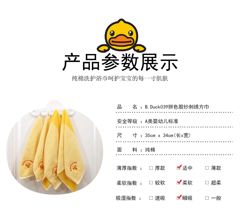 B.DUCK方巾三条装039/35*34cm*3(单位:份) 黄色