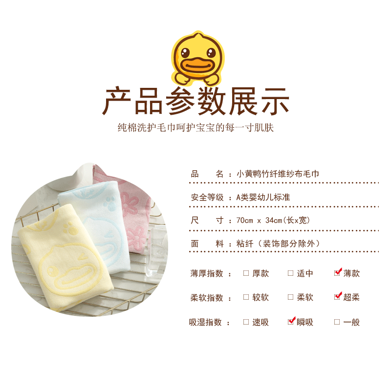 B.Duck baby小黄鸭纱布面巾三条装754/70*34cm*3(单位:份) 混色