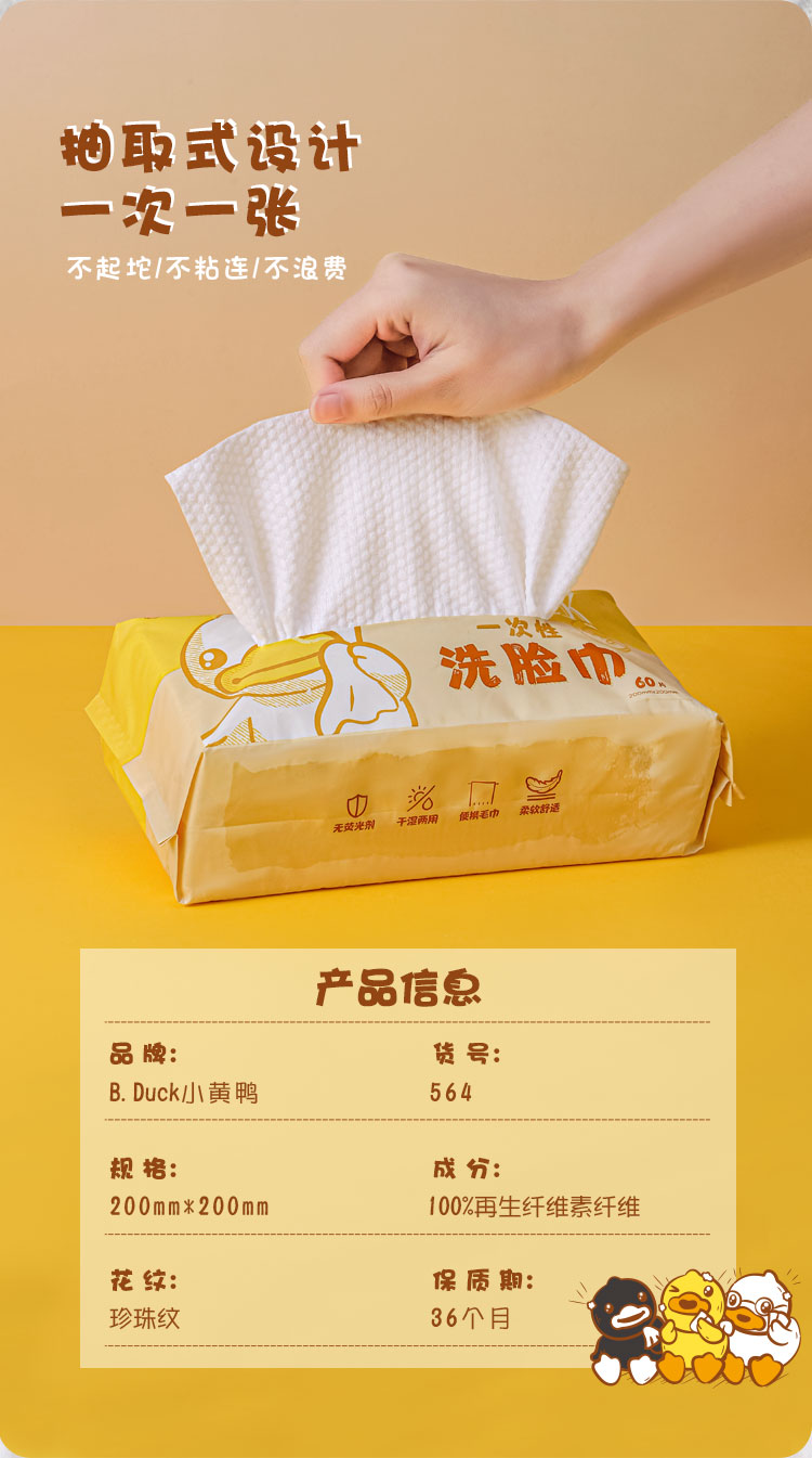 B.Duck小黄鸭抽式洗脸巾三包装564/20*20cm*60*3(单位:份) 黄色
