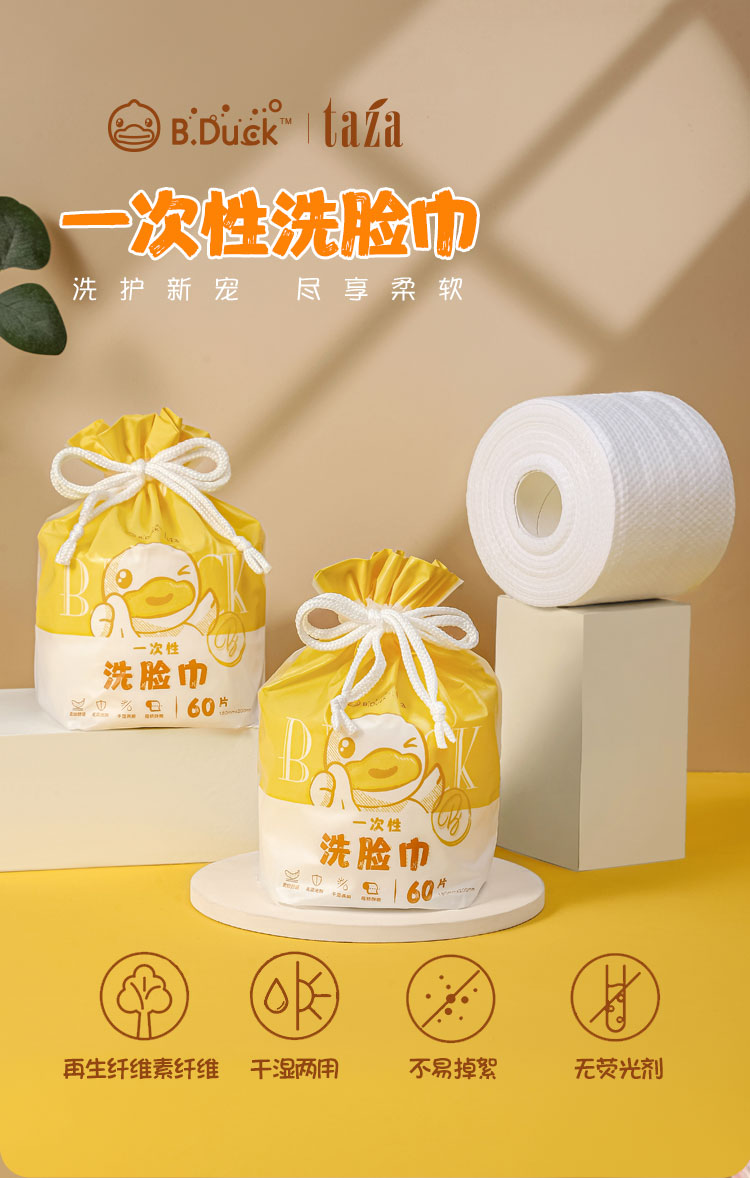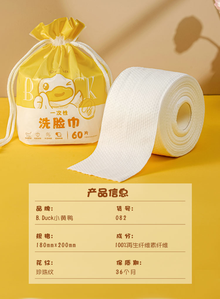 B.Duck小黄鸭卷筒式一次性毛巾三包装082/20*18cm*60*3(单位:份) 黄色