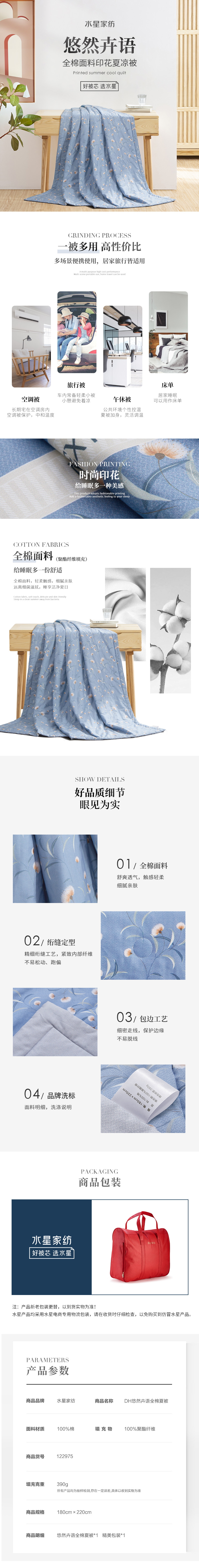 水星家纺 DH悠然卉语全棉夏被 180cm×220cm/122975 (单位:条) 宝石蓝