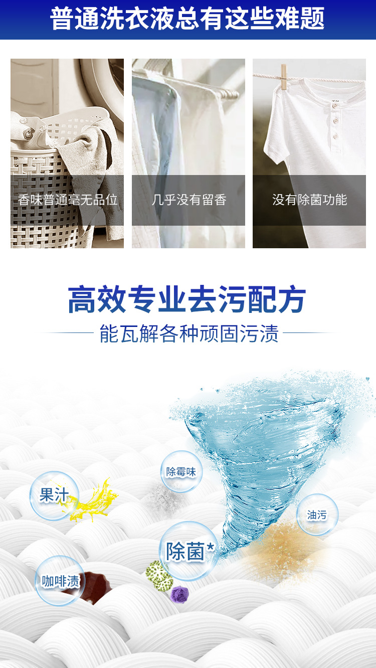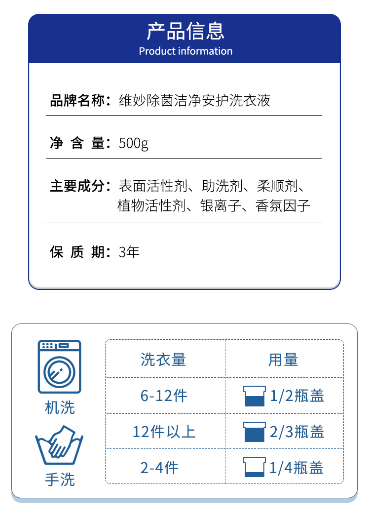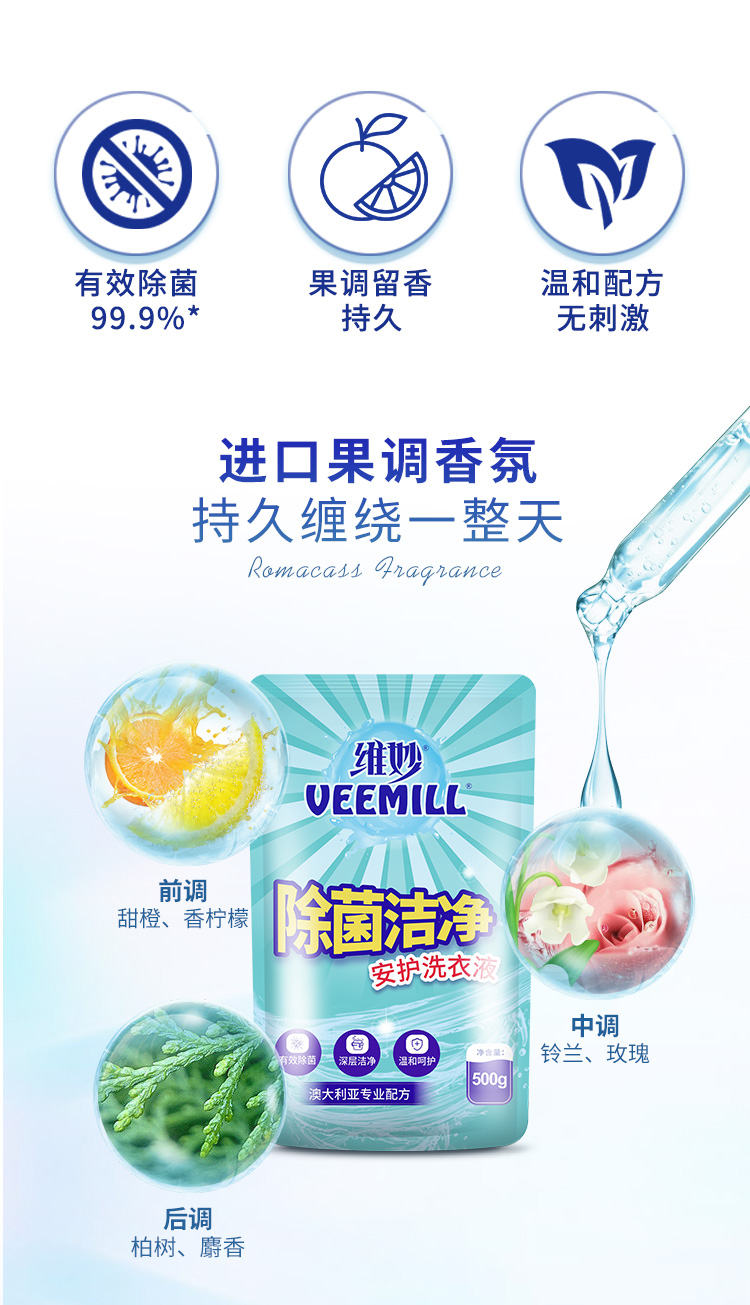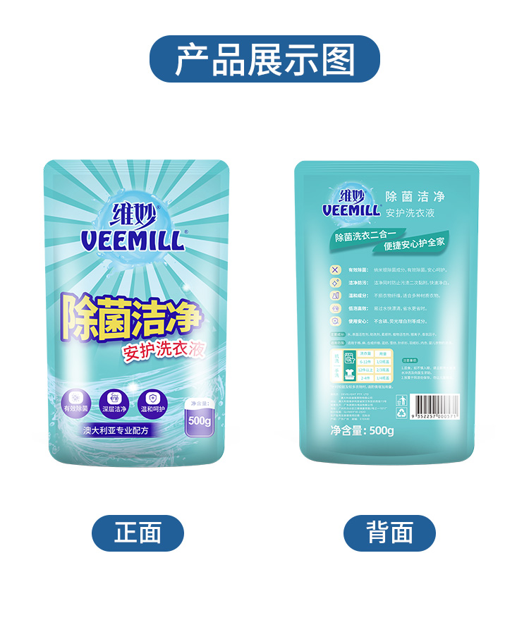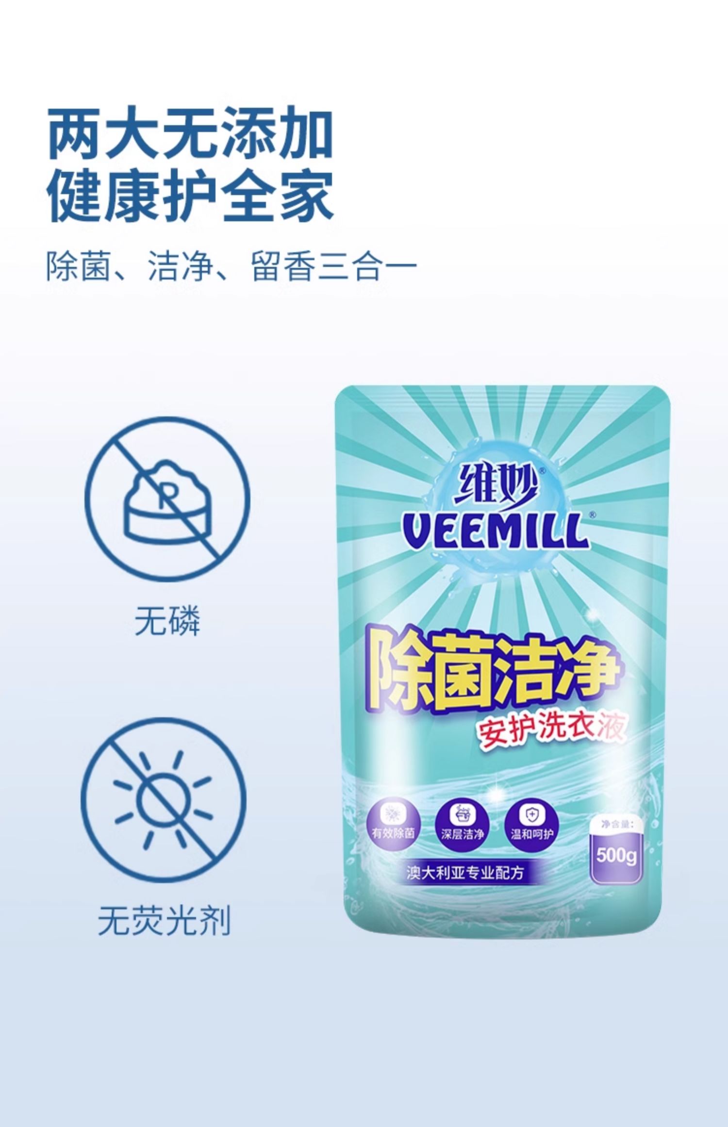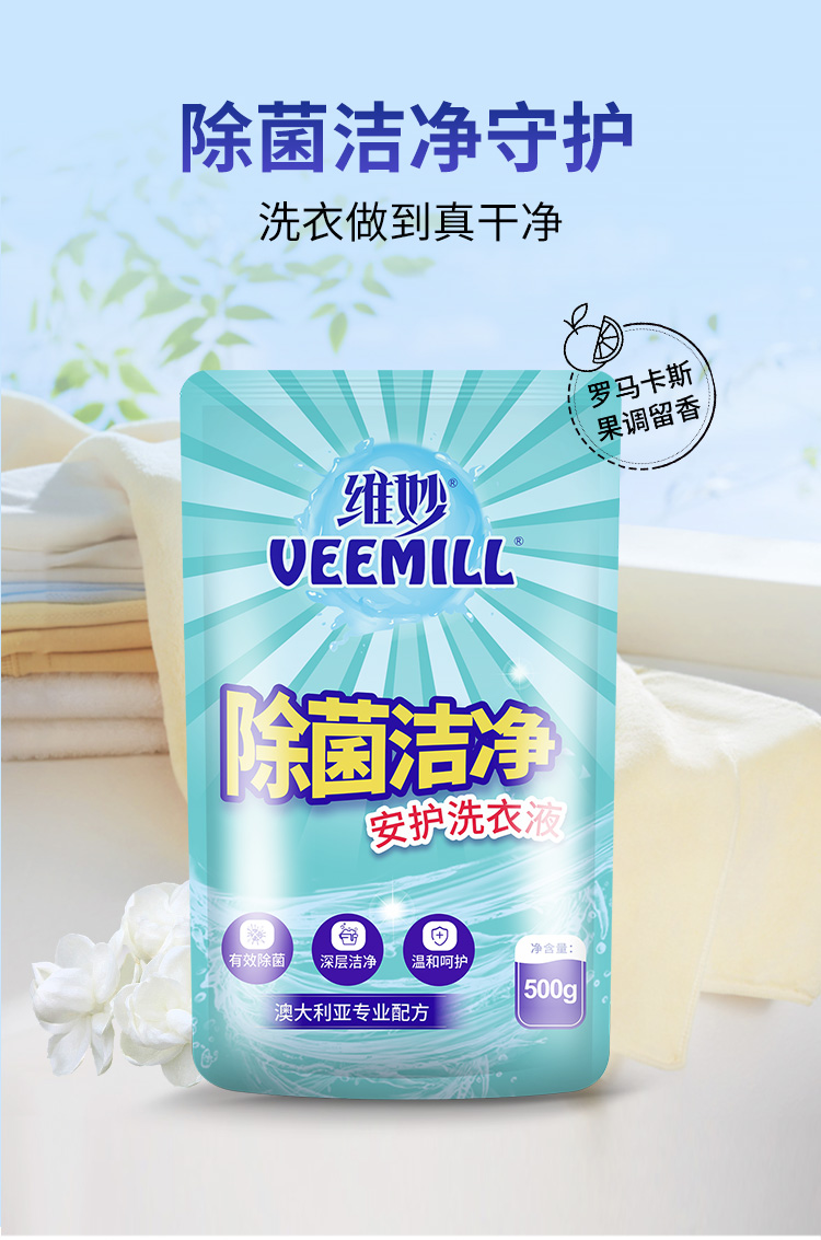 维妙除菌洁净洗衣液500g/袋*2袋 水蓝色