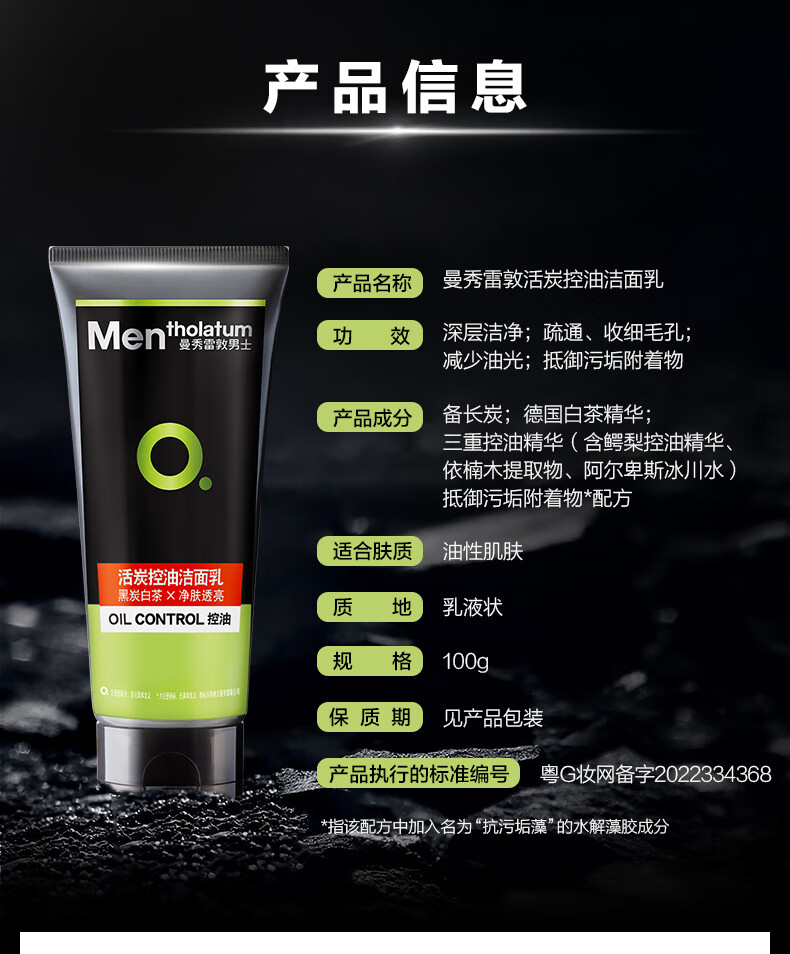 曼秀雷敦活炭控油洁面乳100g/支 黑色