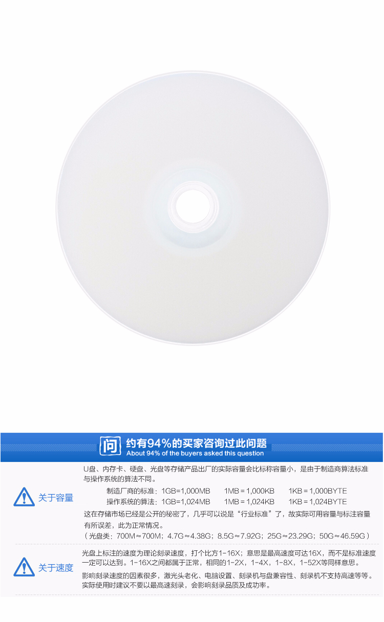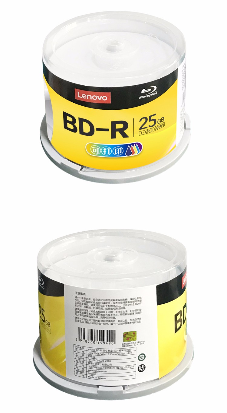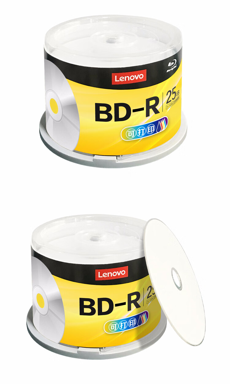 联想(Lenovo)BD-R蓝光光盘/刻录盘 6-12速25G 可打印 50片桶装 白色