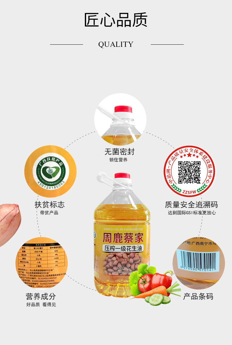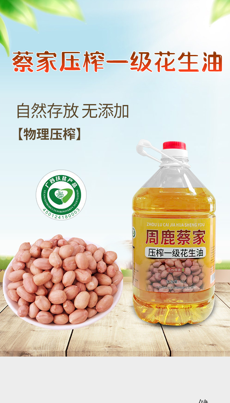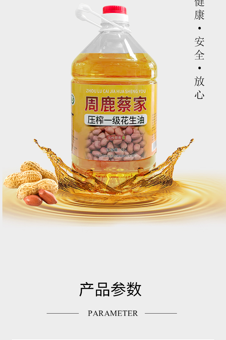 黄美清蔡家美花生油压榨一级花生油4L 单位:桶 香槟黄