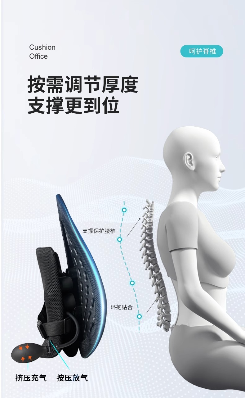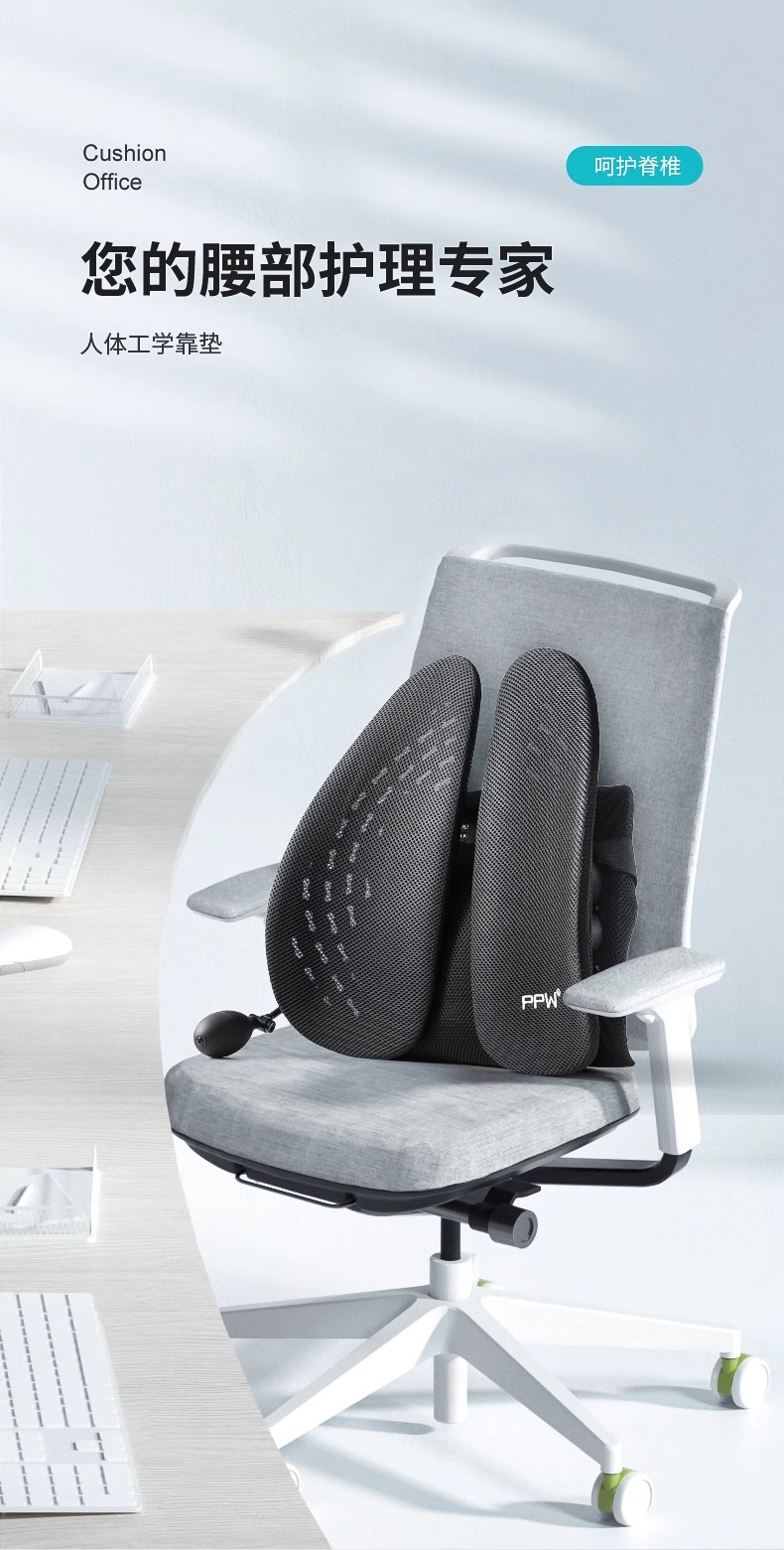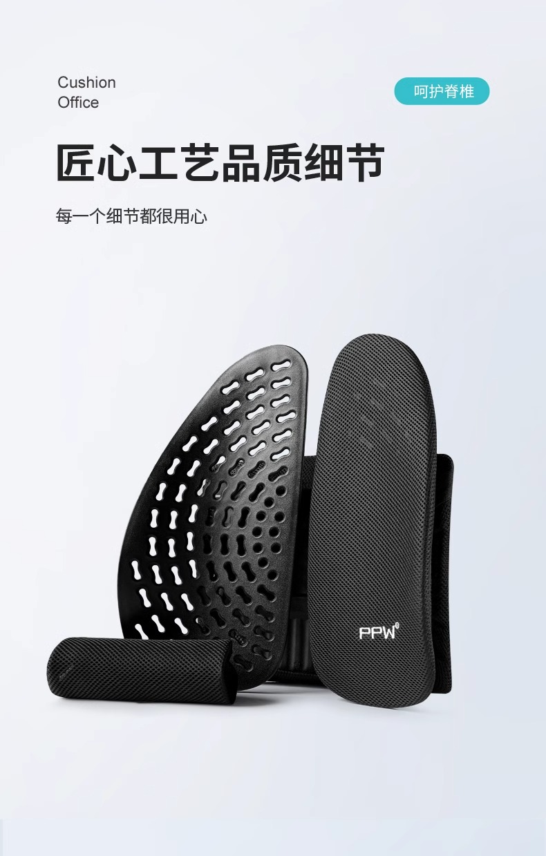 PPW人体工学靠垫护腰靠垫基础网布款骑士黑(400*400*140mm)/个 骑士黑