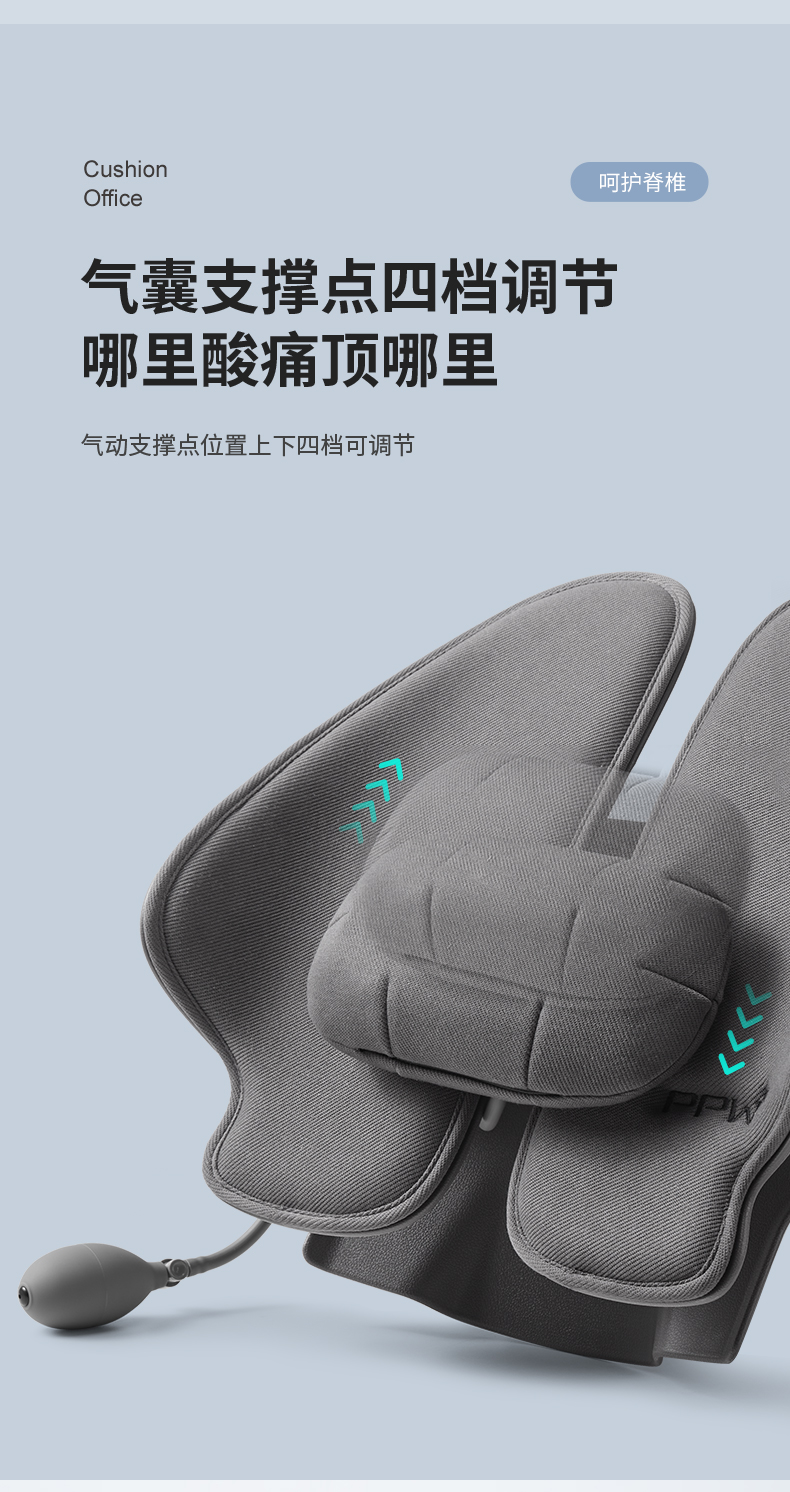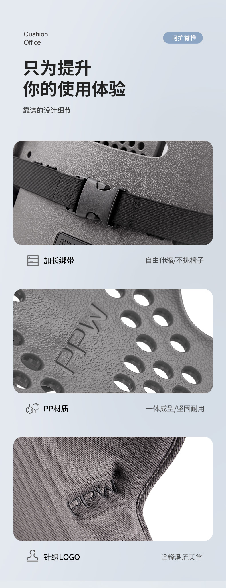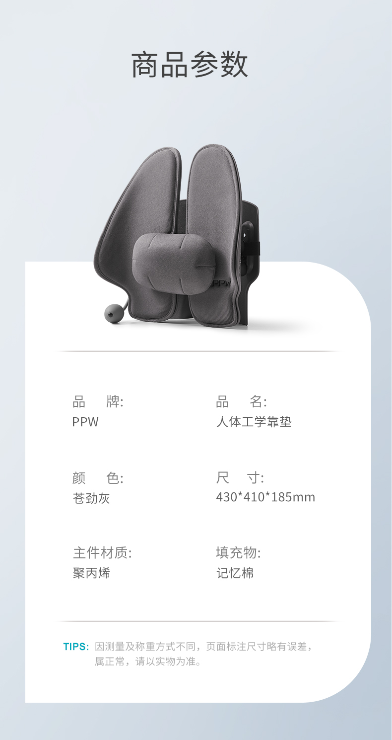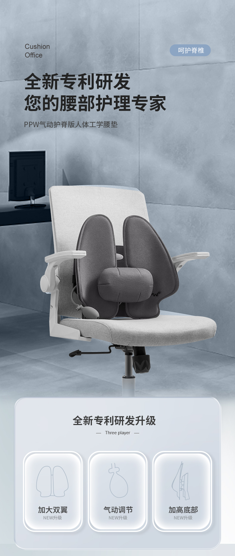 PPW人体工学靠垫护腰靠垫升级气动款苍劲灰(430*410*185mm)/个 苍劲灰