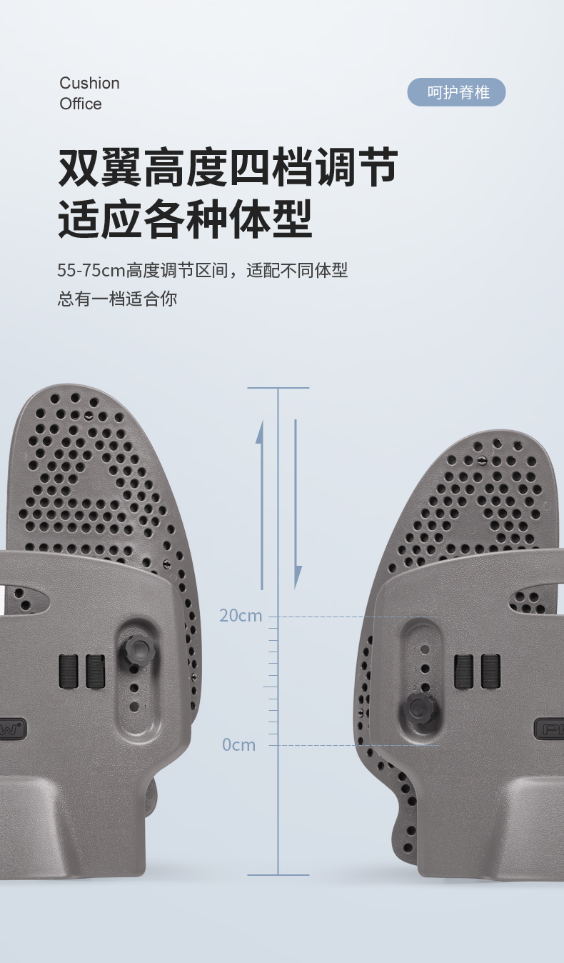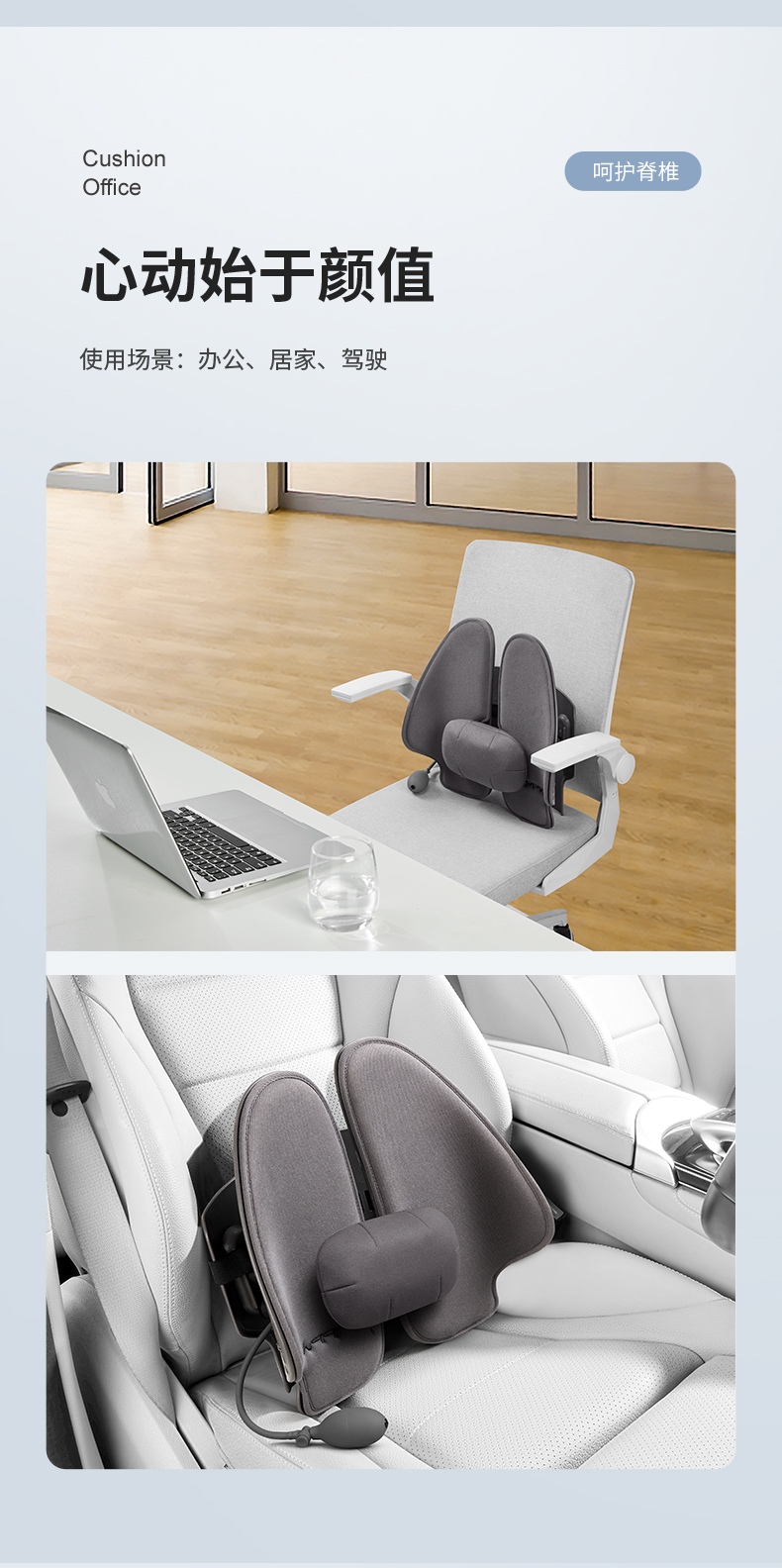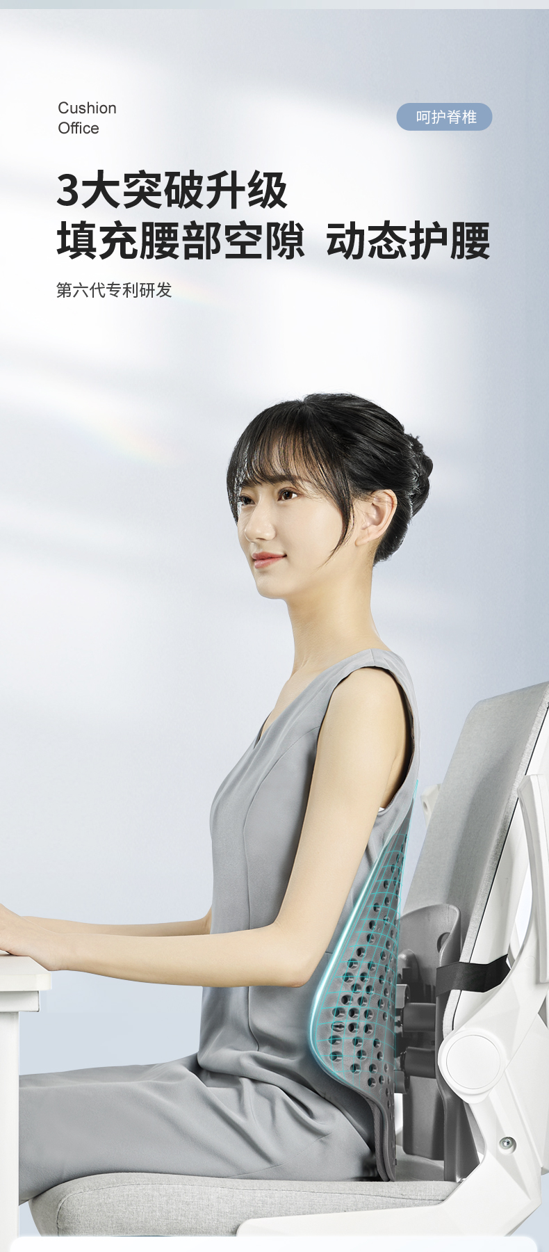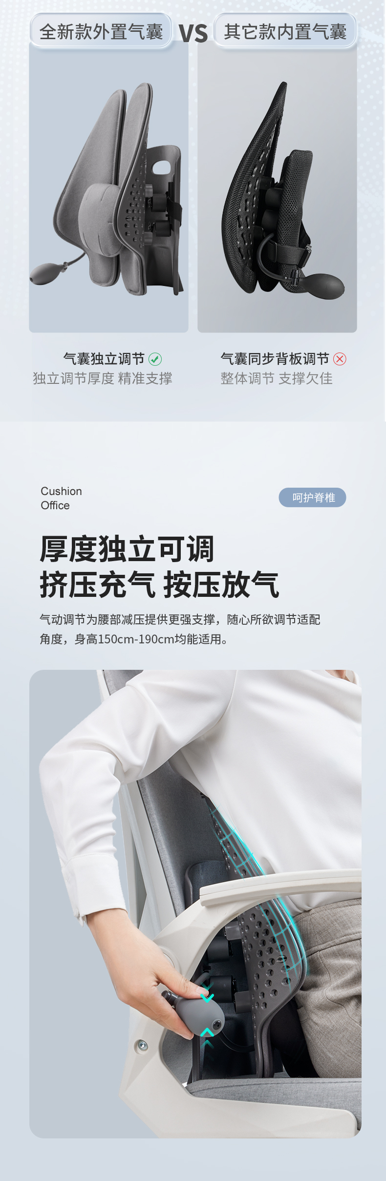 PPW人体工学靠垫护腰靠垫升级气动款苍劲灰(430*410*185mm)/个 苍劲灰