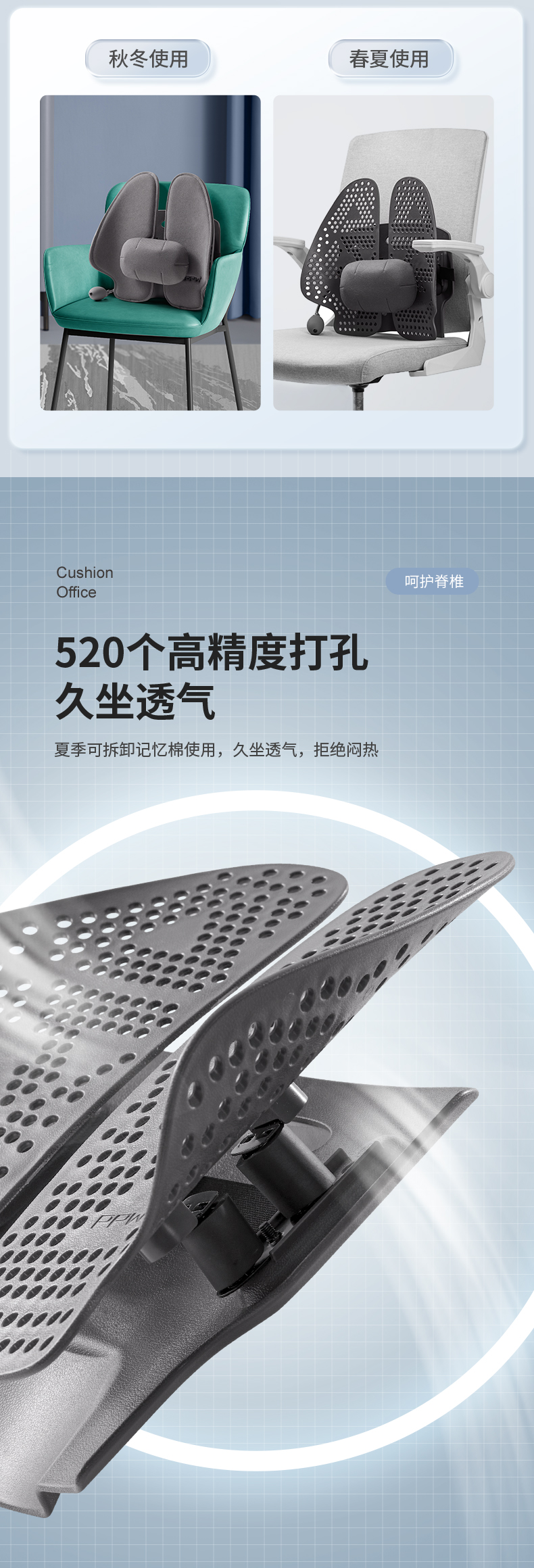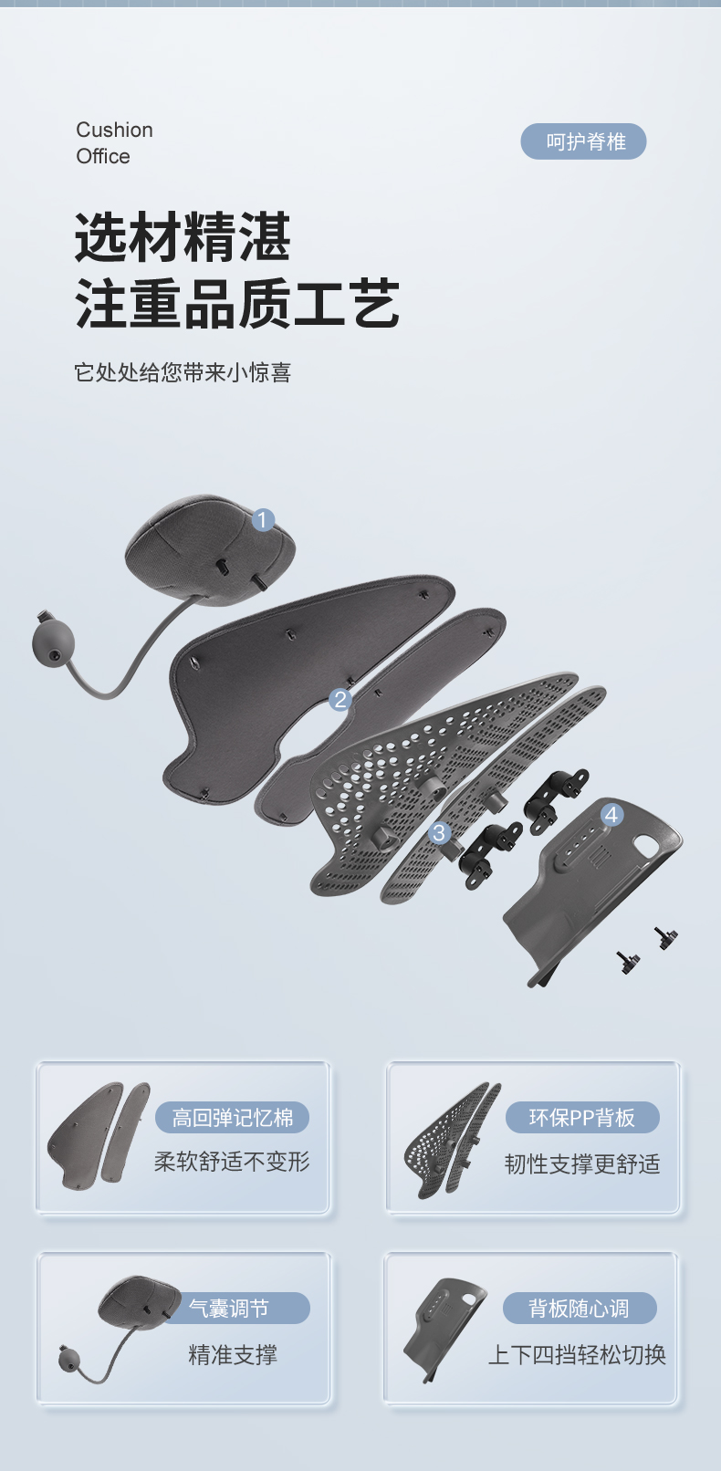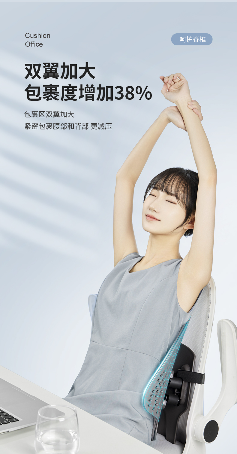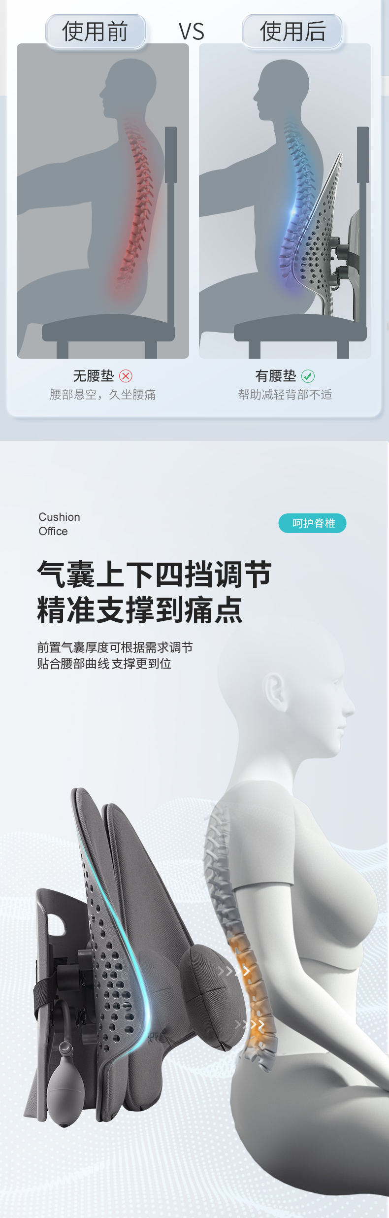 PPW人体工学靠垫护腰靠垫升级气动款苍劲灰(430*410*185mm)/个 苍劲灰