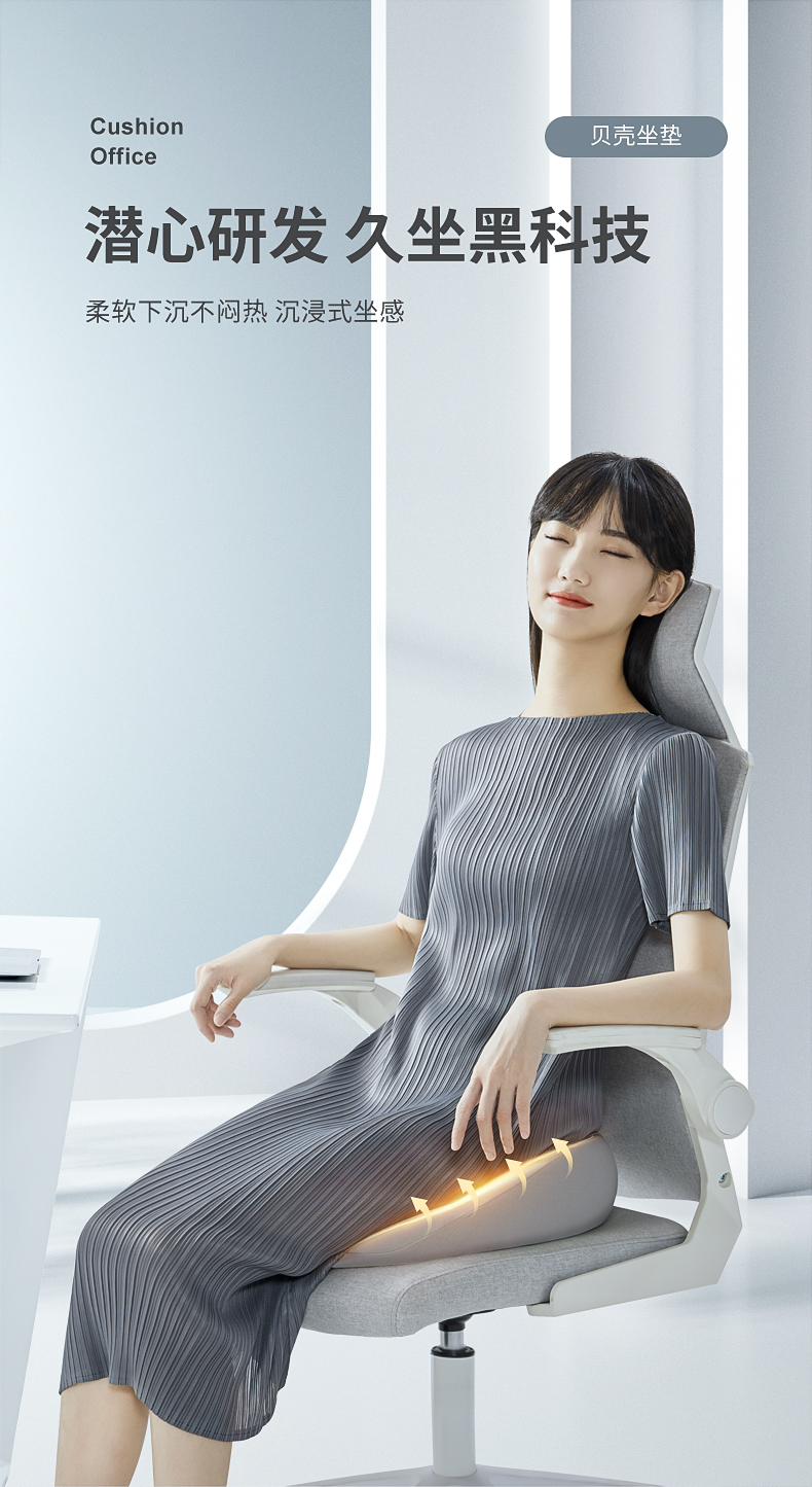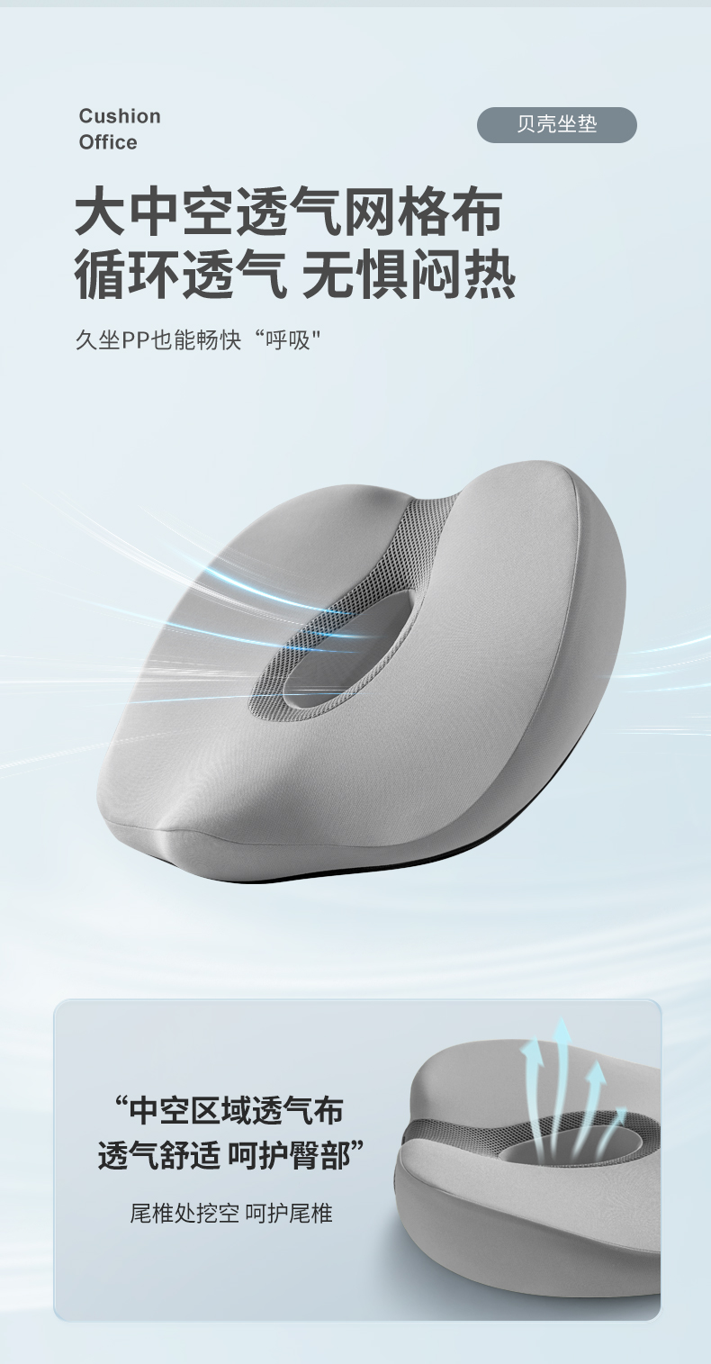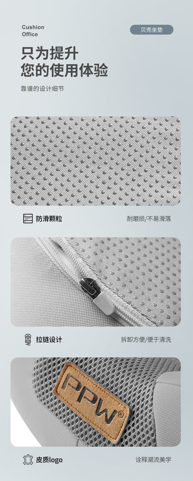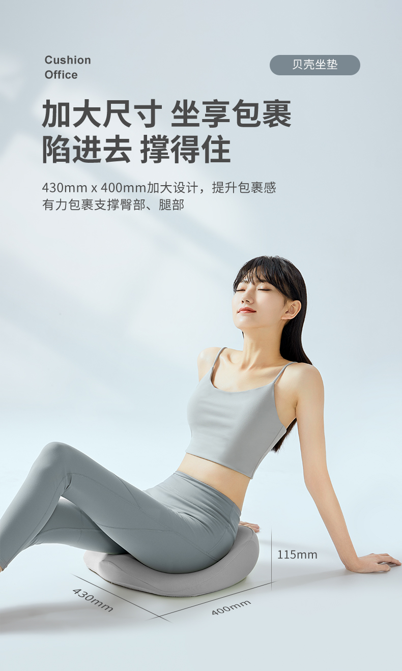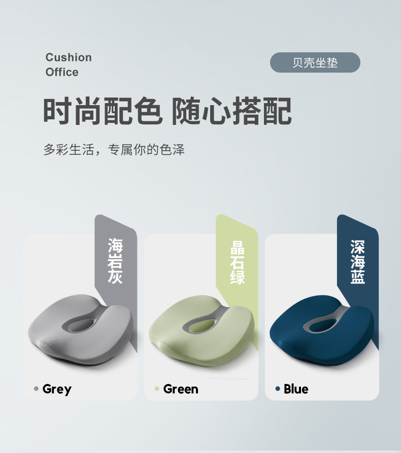 PPW贝壳坐垫办公室椅垫竹炭款深海蓝(430*400*65/115mm)/个 深海蓝