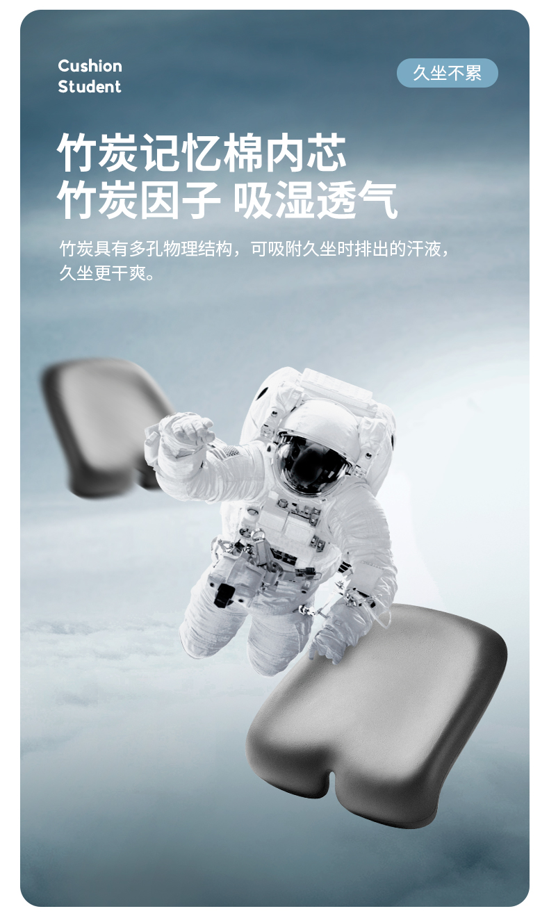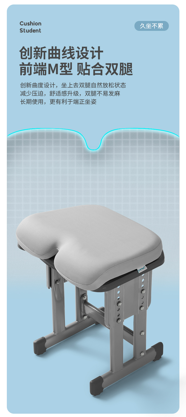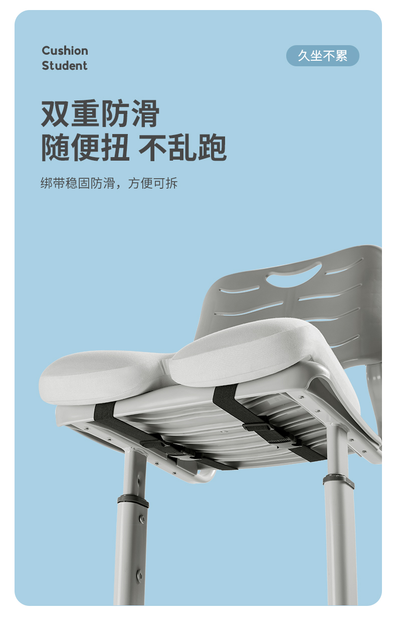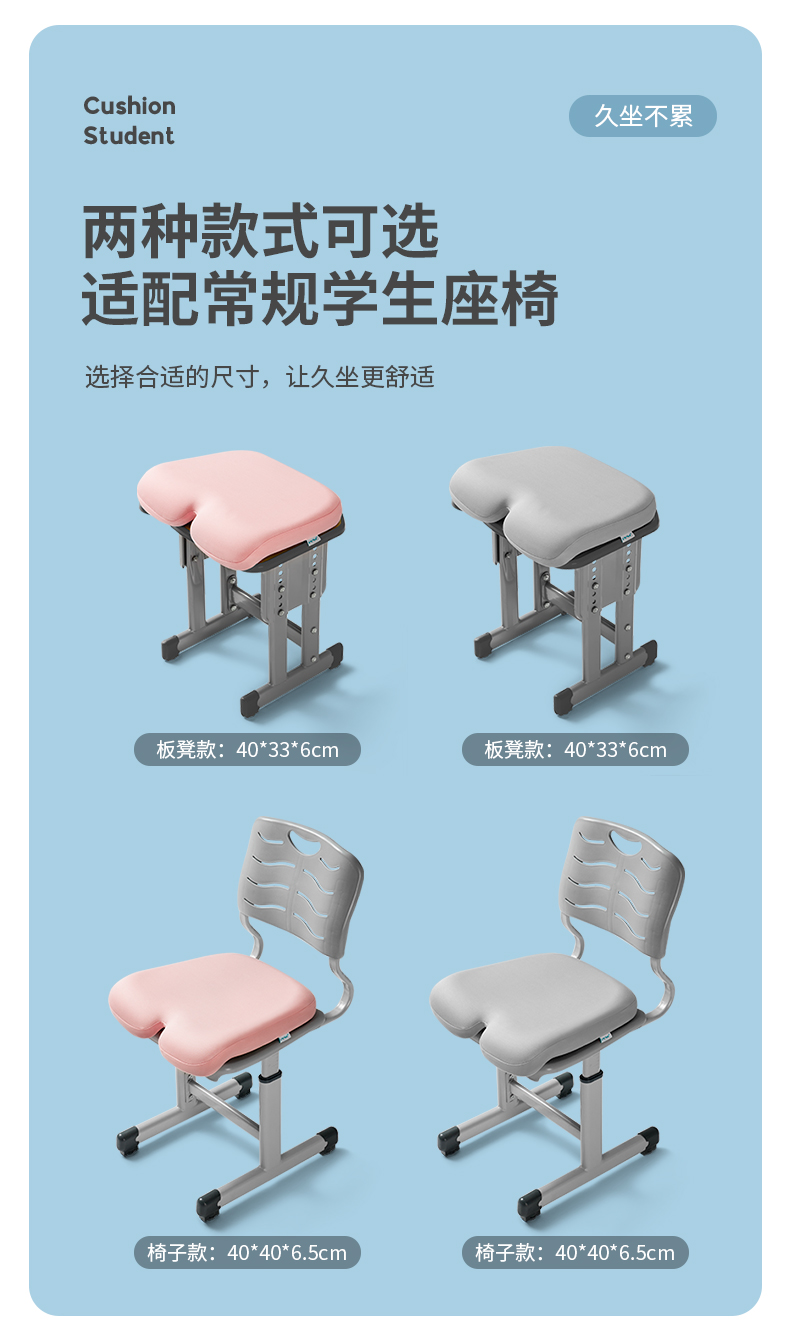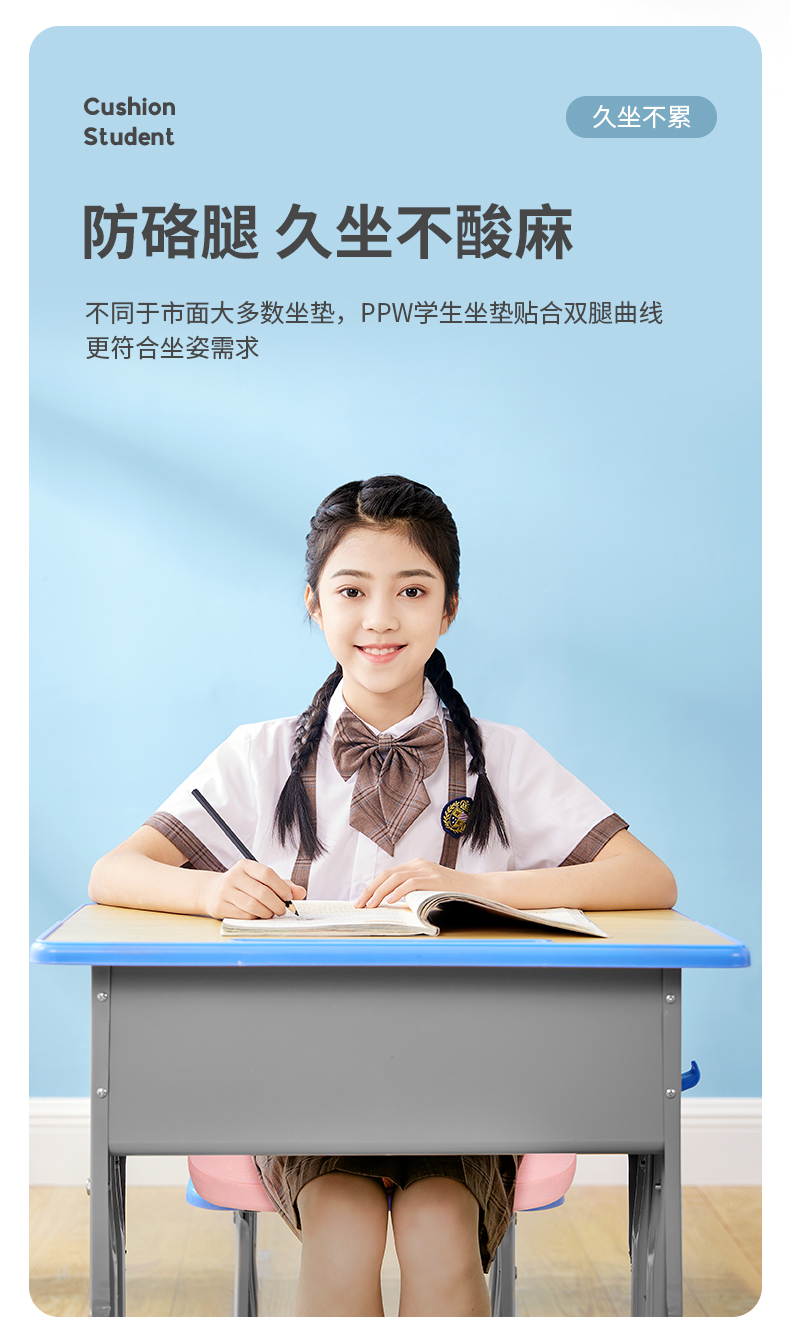 PPW学生坐垫教室专用椅垫座椅款海岩灰(400*400*65/90mm)/个 海岩灰
