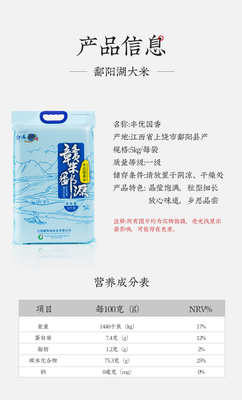 鄱阳湖丰优国香米 5kg大米单位:袋 宝石蓝