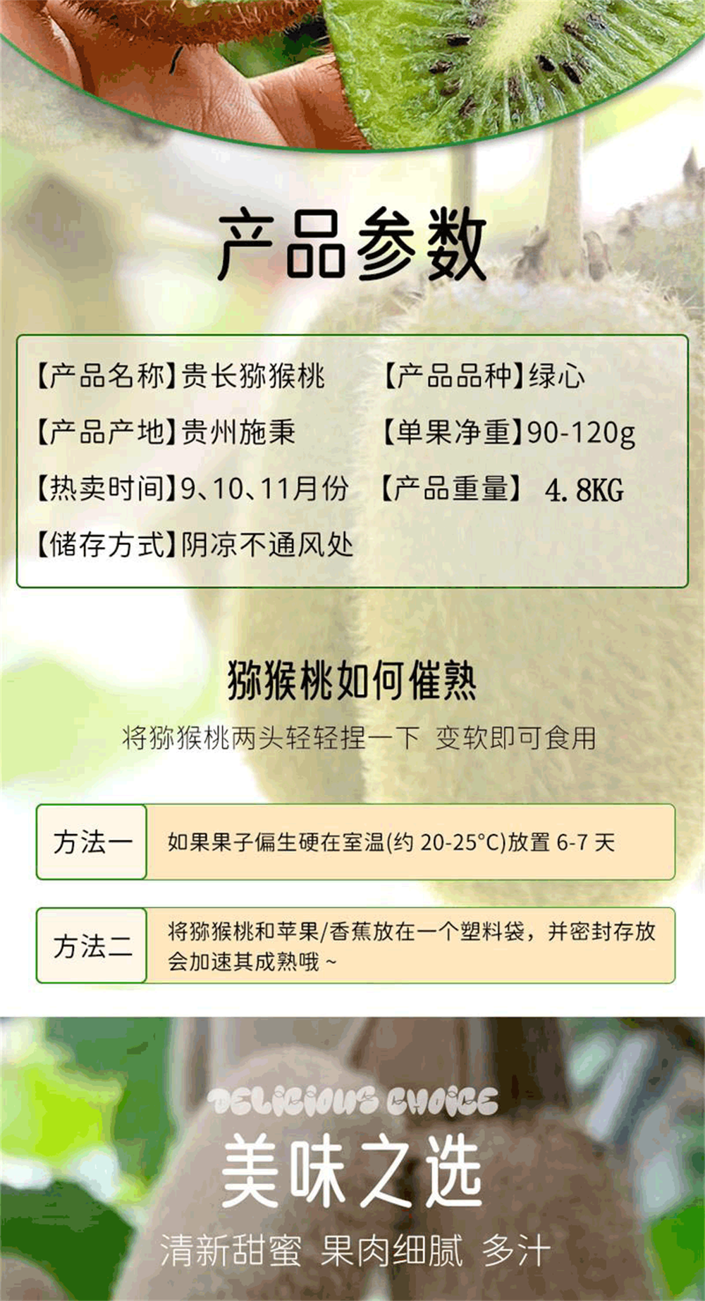 英聚源施秉贵长猕猴桃4.8kg/箱 柠绿色