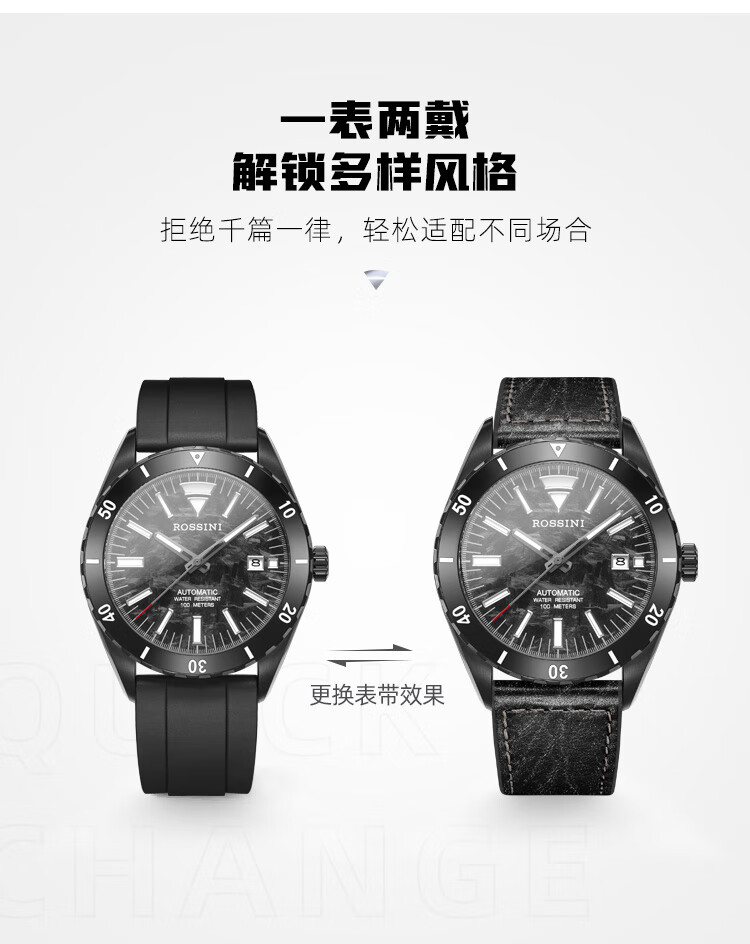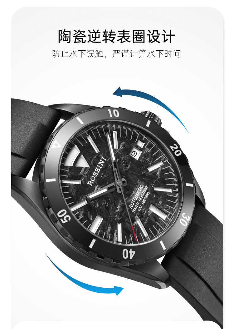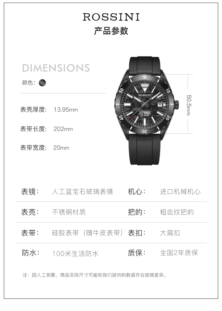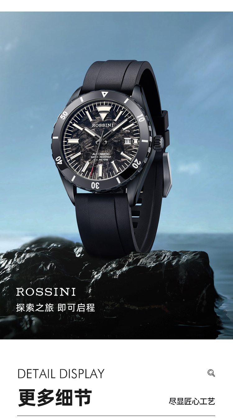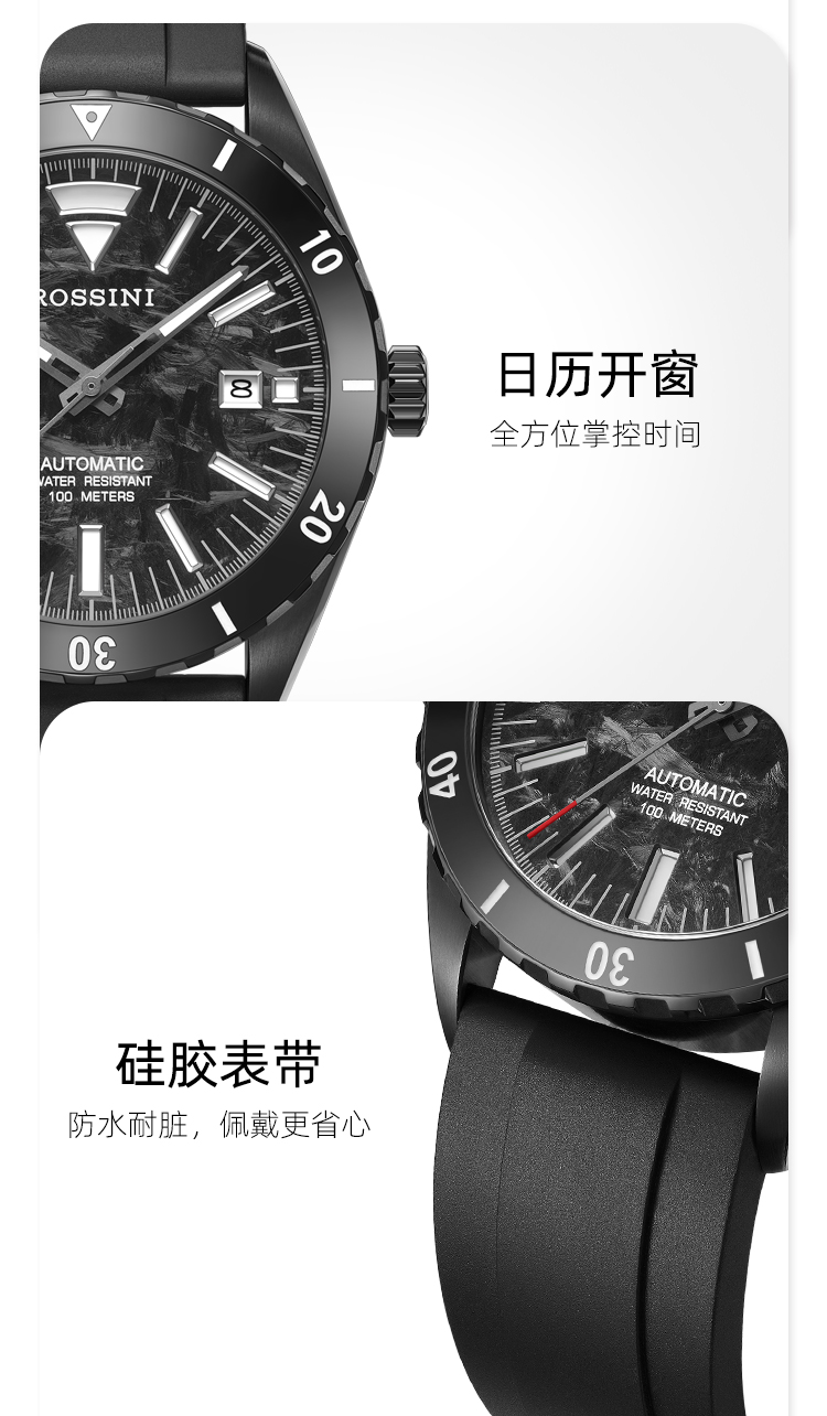 Rossini罗西尼 机械手表黑盘硅胶带时尚运动男表50069B04D(赠表带)(单位1块) 黑色