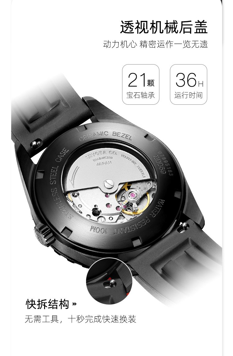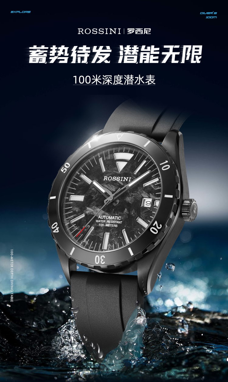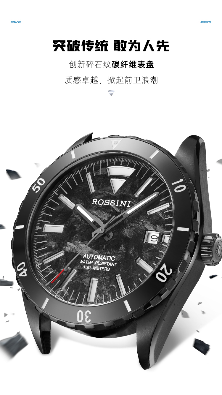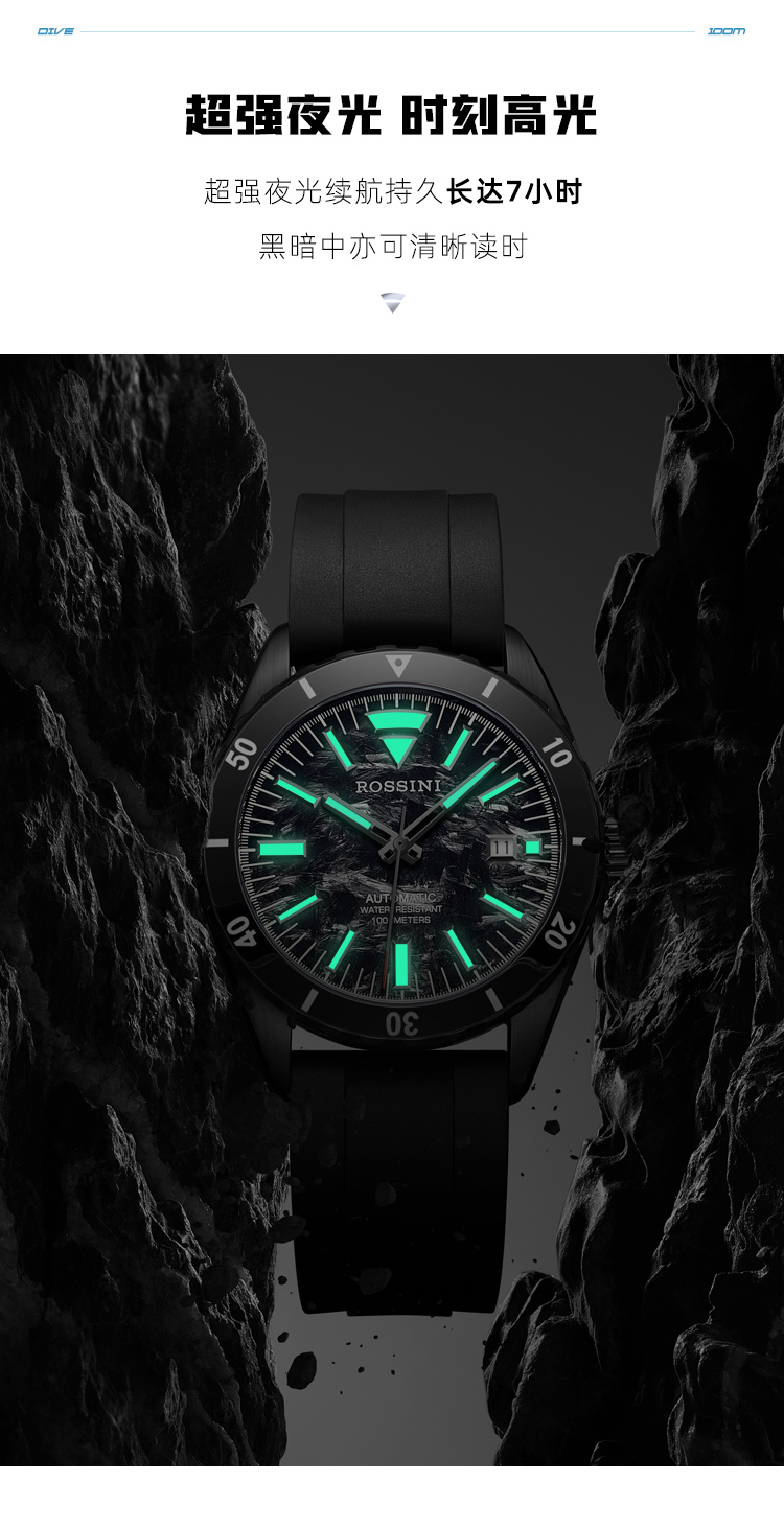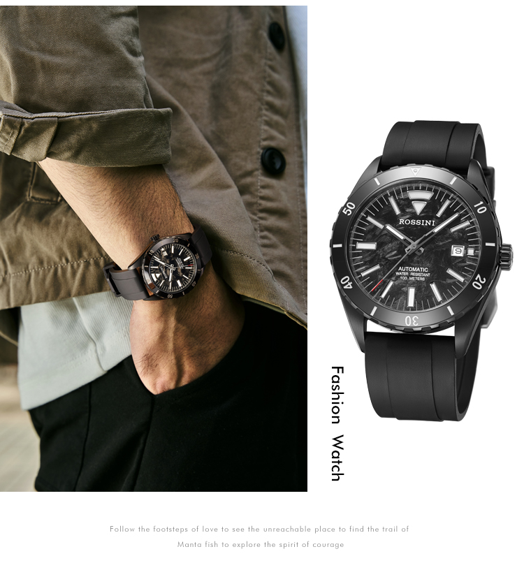 Rossini罗西尼 机械手表黑盘硅胶带时尚运动男表50069B04D(赠表带)(单位1块) 黑色
