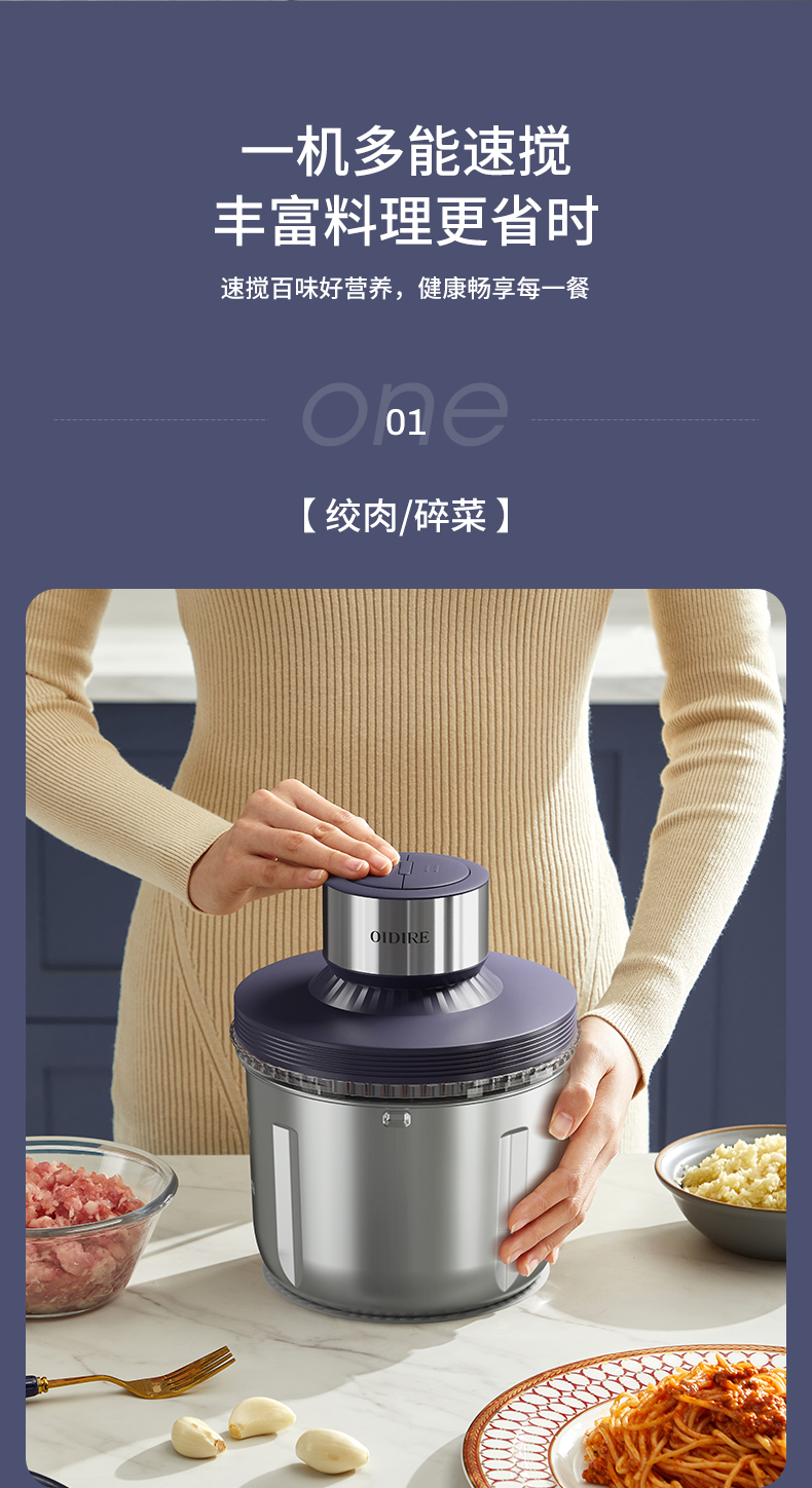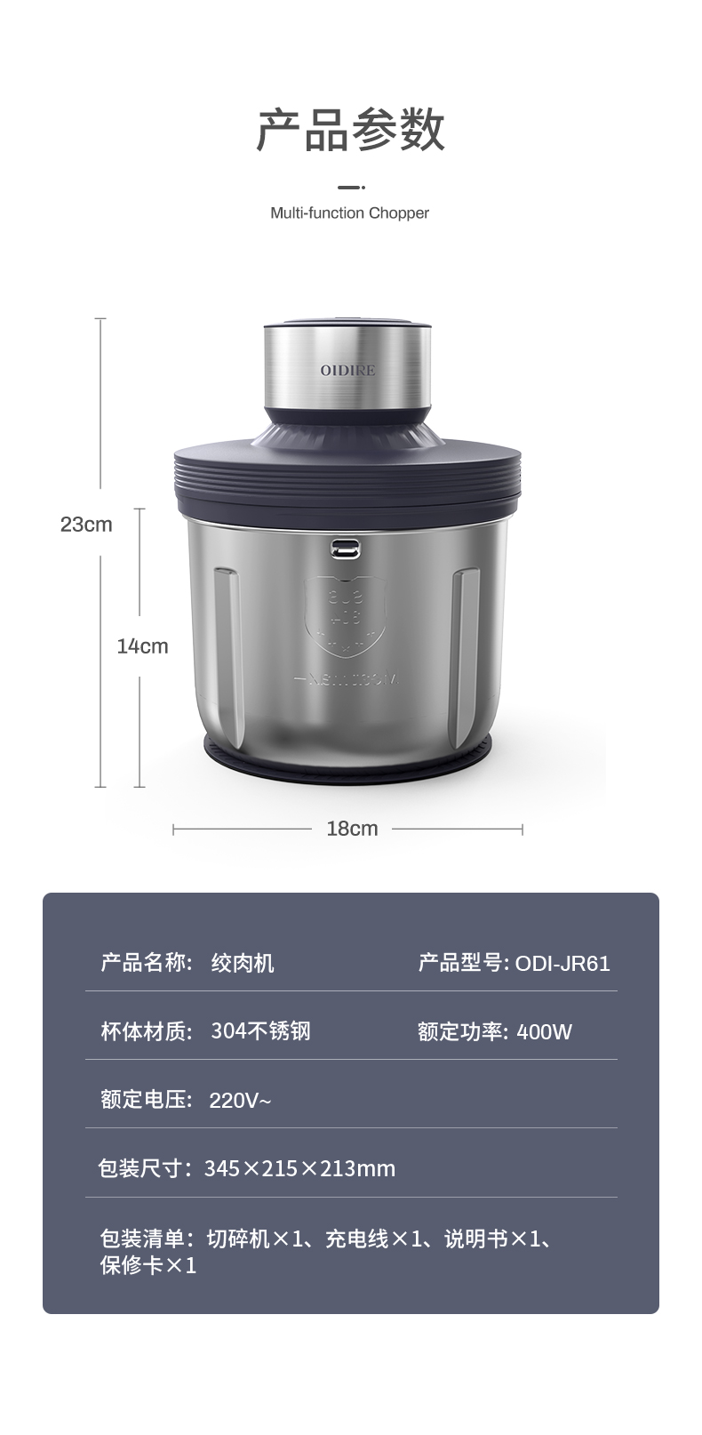OIDIRE绞肉机ODI-JR61家用全自动多功能电动(单位:台) 银灰色-不锈钢款