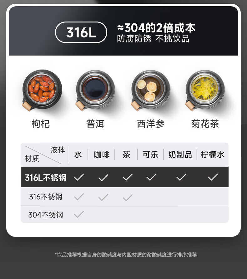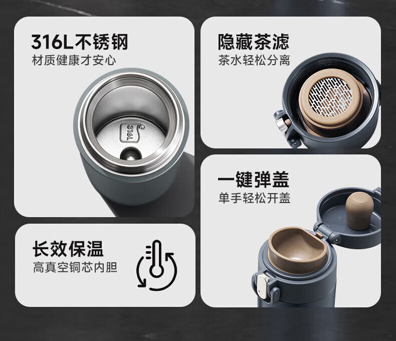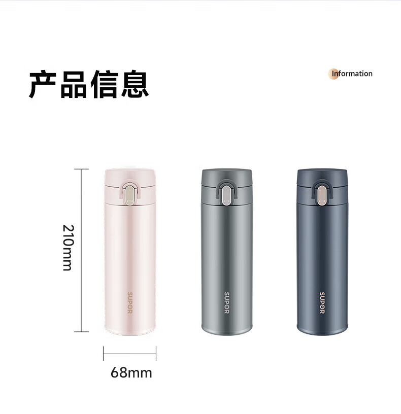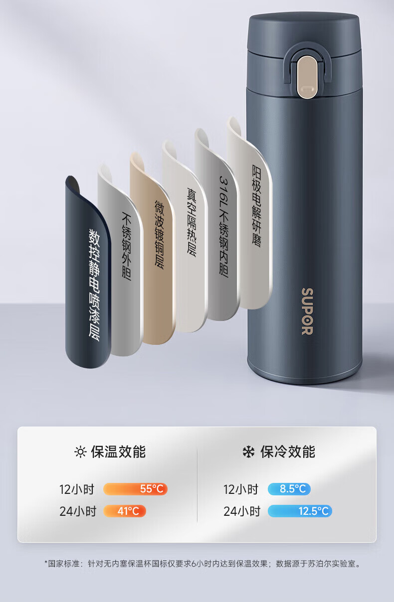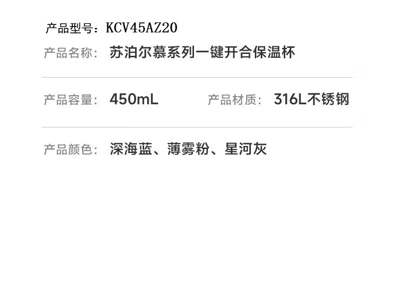 苏泊尔(SUPOR)450ml保温杯316L不锈钢KCV45AZ20(单位:个) 薄雾粉
