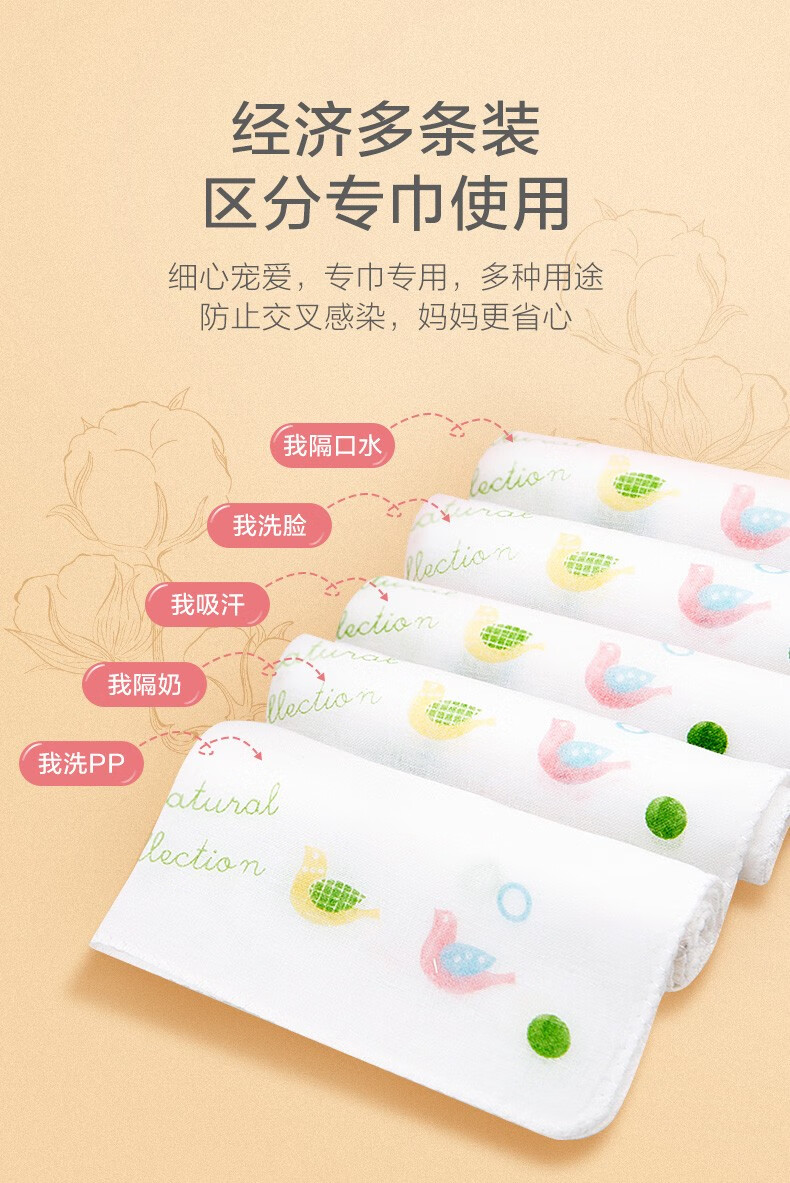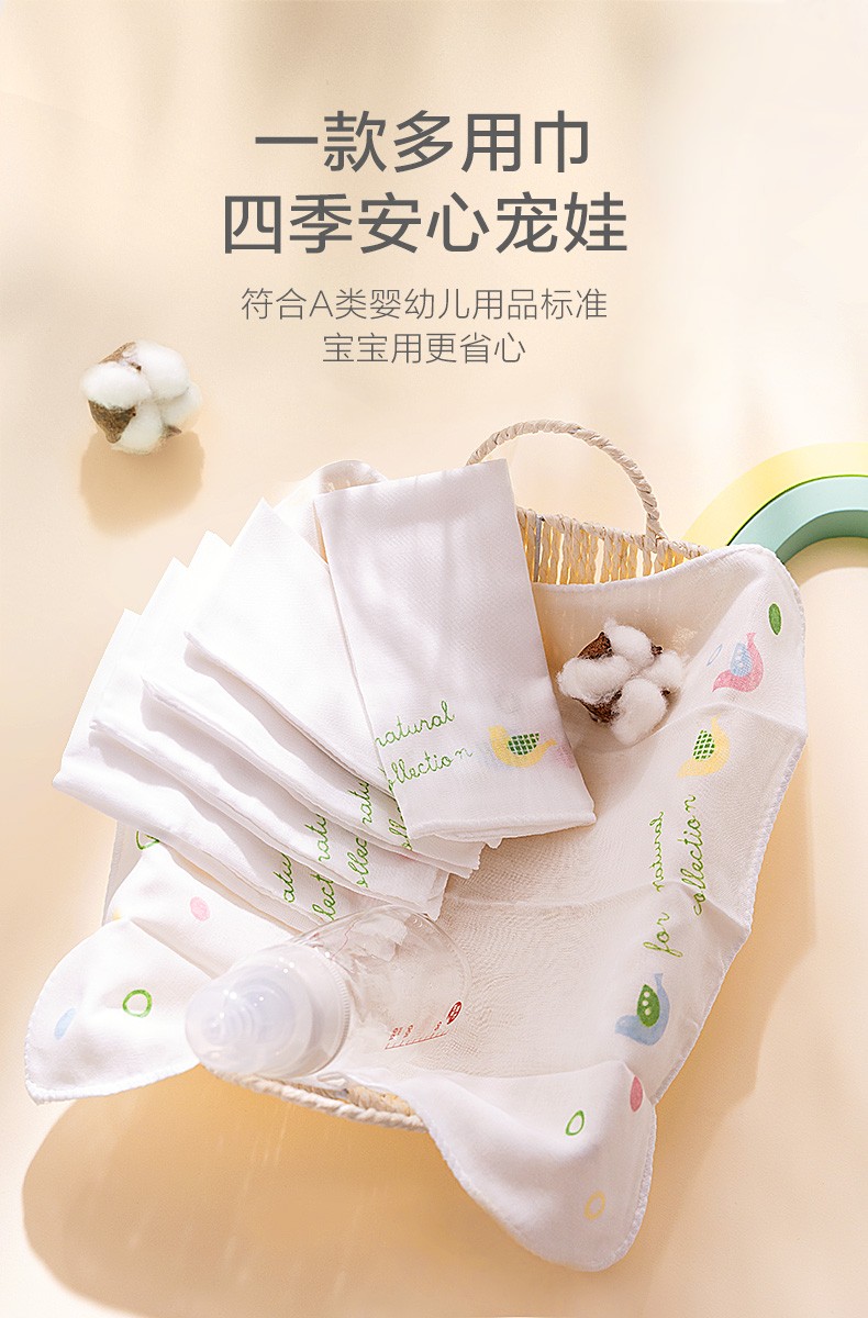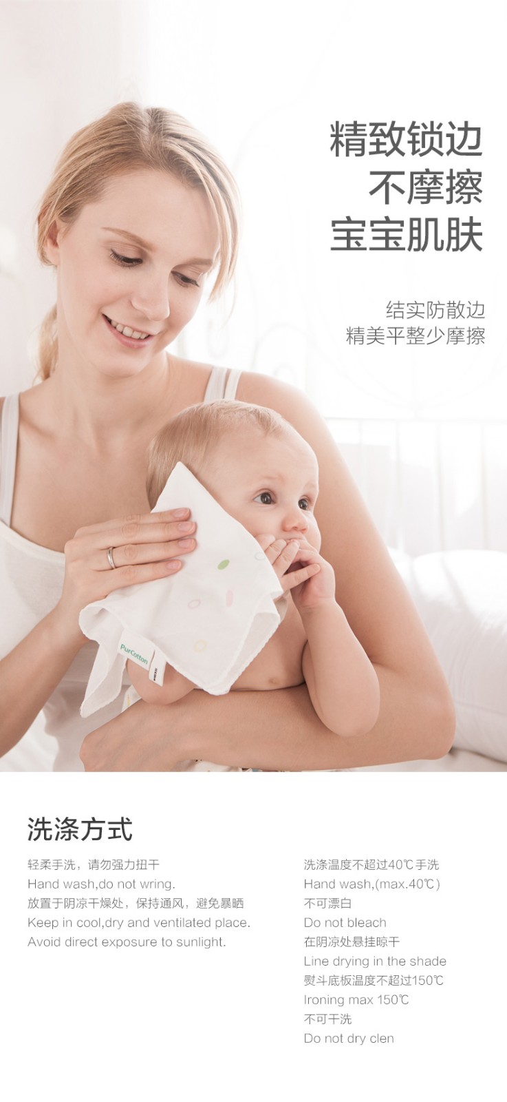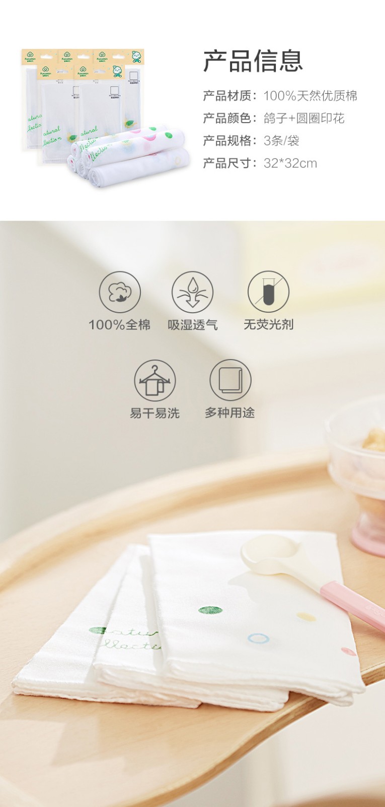 全棉时代纱布手帕 32cm×32cm 鸽子圆圈,3条装 (单位:袋) 白色