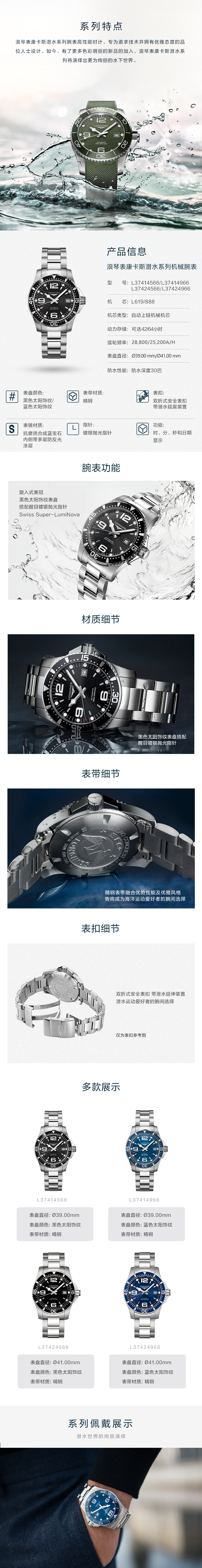 Longines浪琴 康卡斯系列自动机械手表男表(39mm) L3.741.4.96.6(单位:块) 蓝色