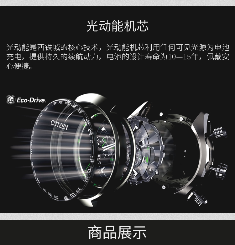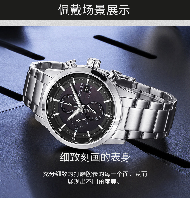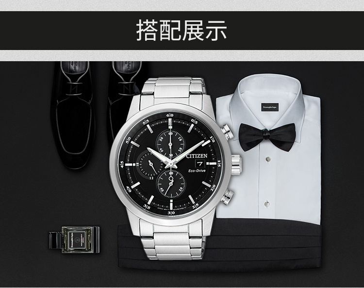 Citizen西铁城 光动能多功能黑盘钢带男表CA0610-52E(单位:个) 黑色