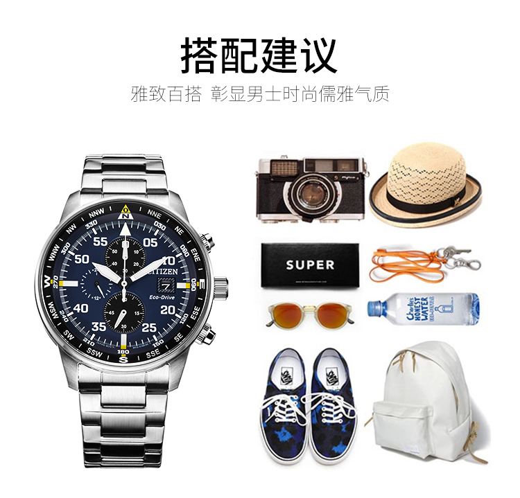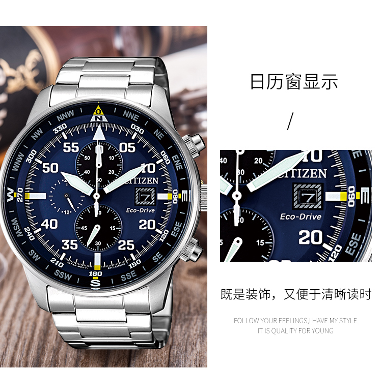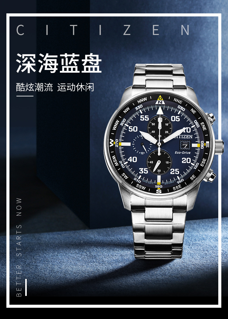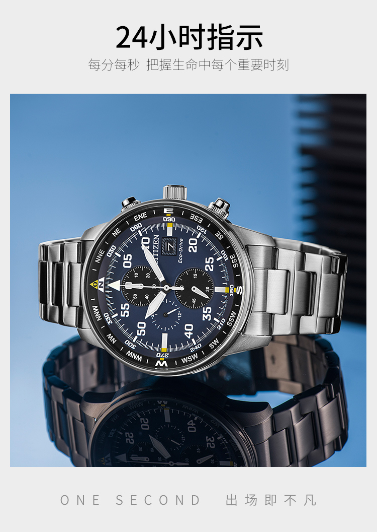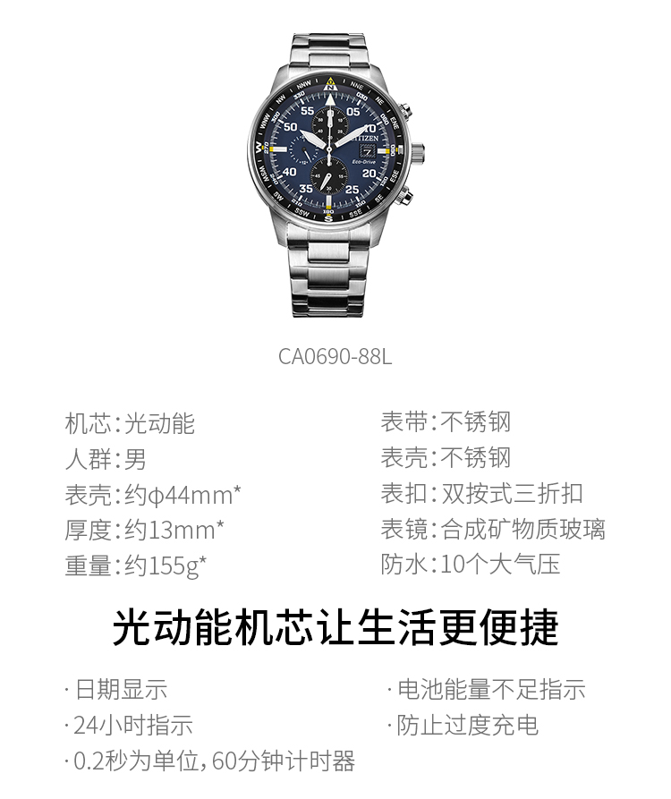 Citizen西铁城 光动能炫酷时尚蓝盘钢带男表CA0690-88L(单位:个) 蓝色
