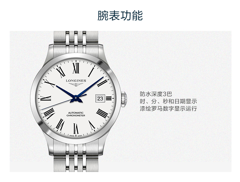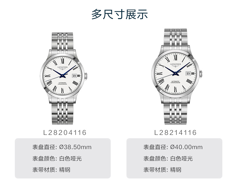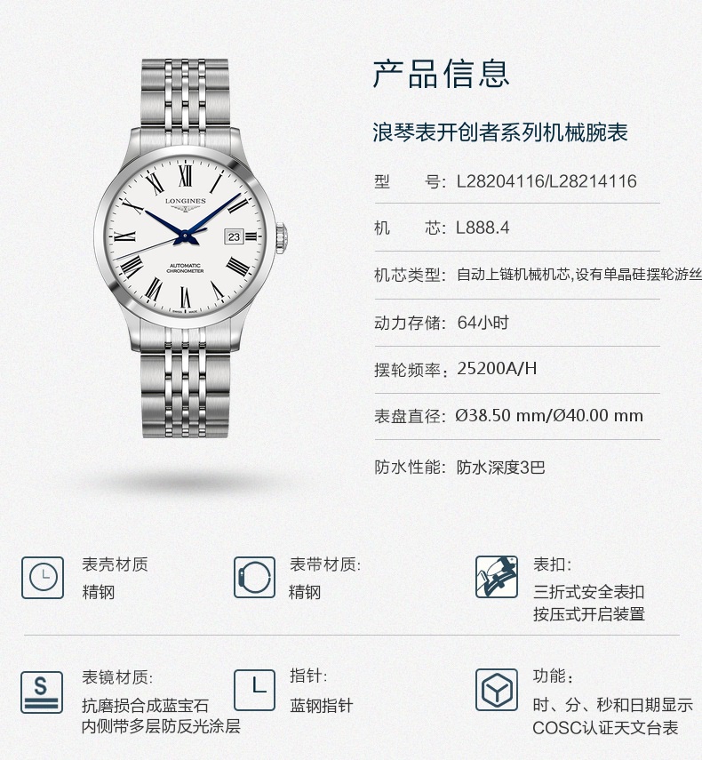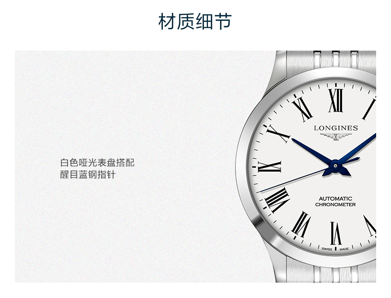 Longines浪琴 开创者系列自动机械钢带男士腕表(40mm) L2.821.4.11.6(块) 白色