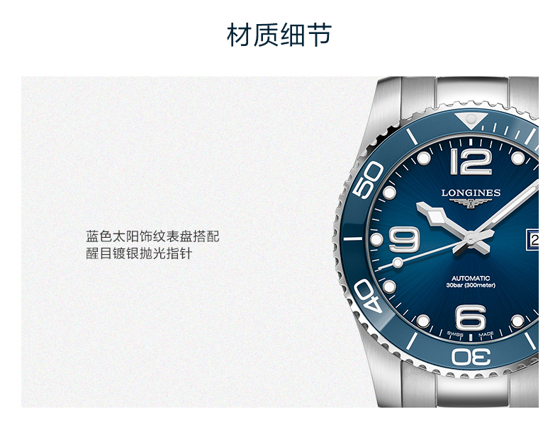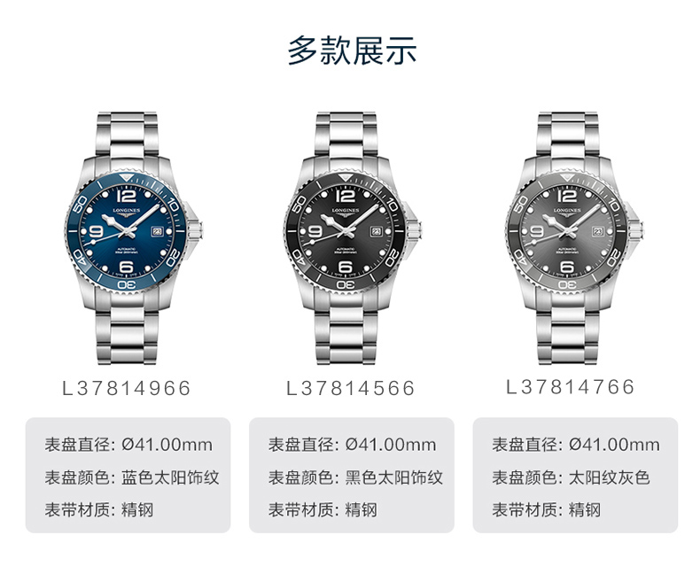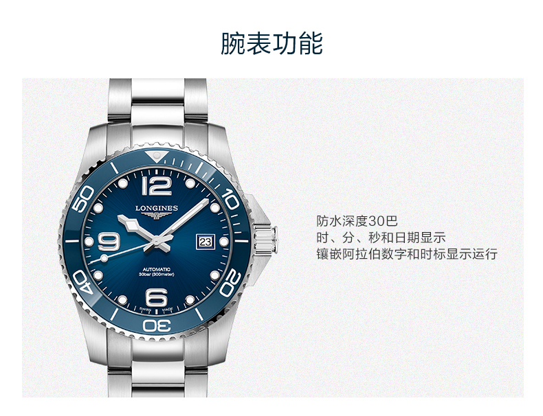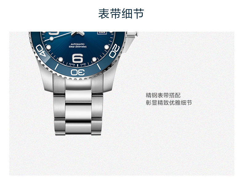 Longines浪琴 康卡斯潜水系列自动机械陶瓷钢带男士腕表41mm L3.781.4.96.6 块 蓝色