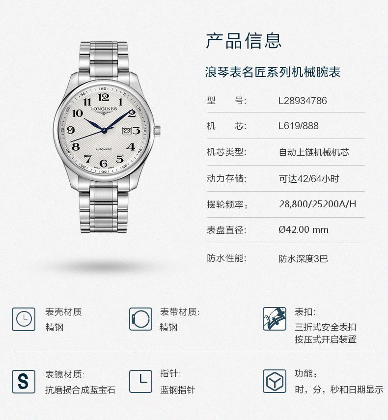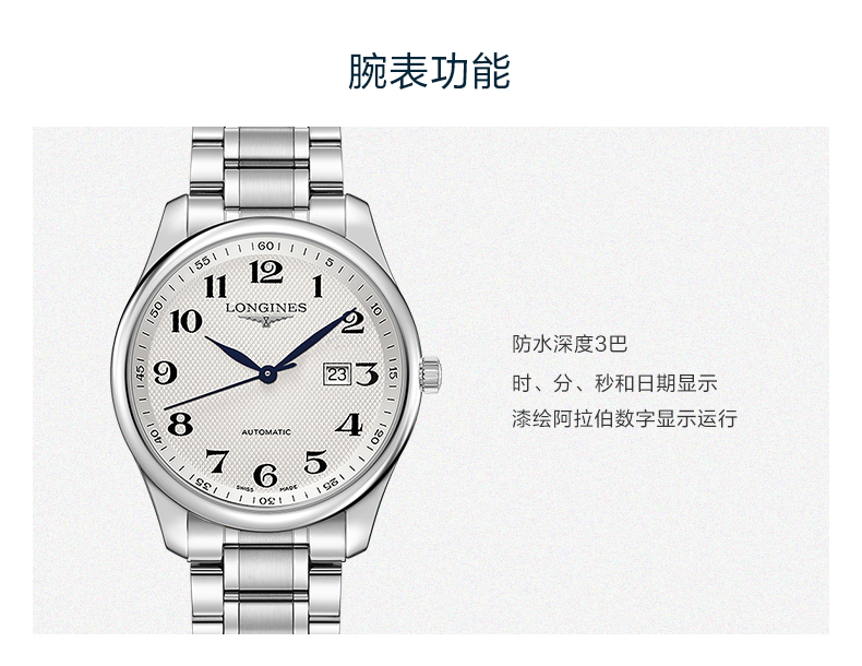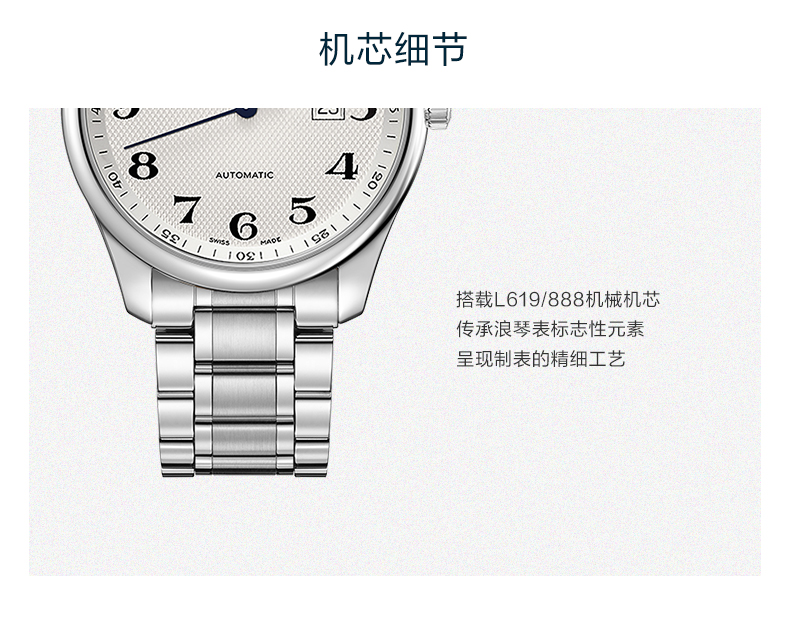 Longines浪琴 名匠系列机械手表腕表银钢带男表(42mm) L2.893.4.78.6 块 白色