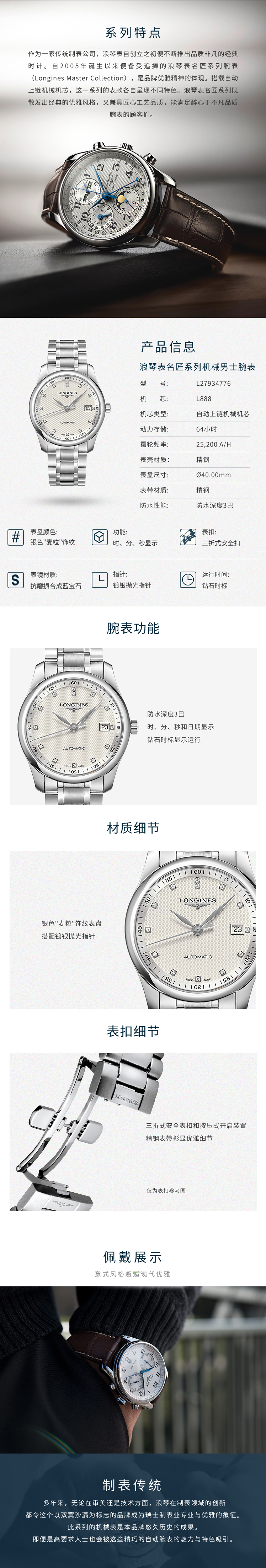 Longines浪琴 名匠系列机械手表腕表钢带男表(40mm) L2.793.4.77.6(块) 白色