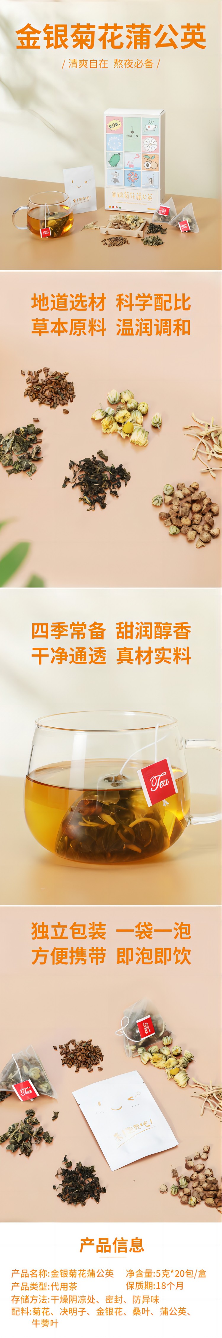 茶茶一季金银菊花蒲公英袋泡茶5g*20泡*2泡单位:盒 象牙色