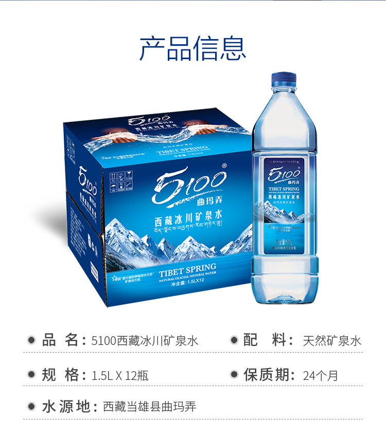 5100西藏冰川矿泉水1.5l*12瓶大瓶装 蓝色 1.5L*12瓶/箱