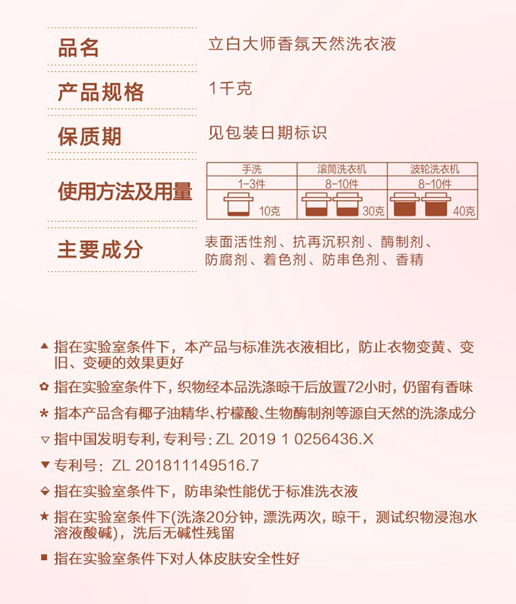 立白大师香氛液玫瑰洗衣液1kg*1瓶+500g*1袋LB20230421YJDF0108(单位:瓶)