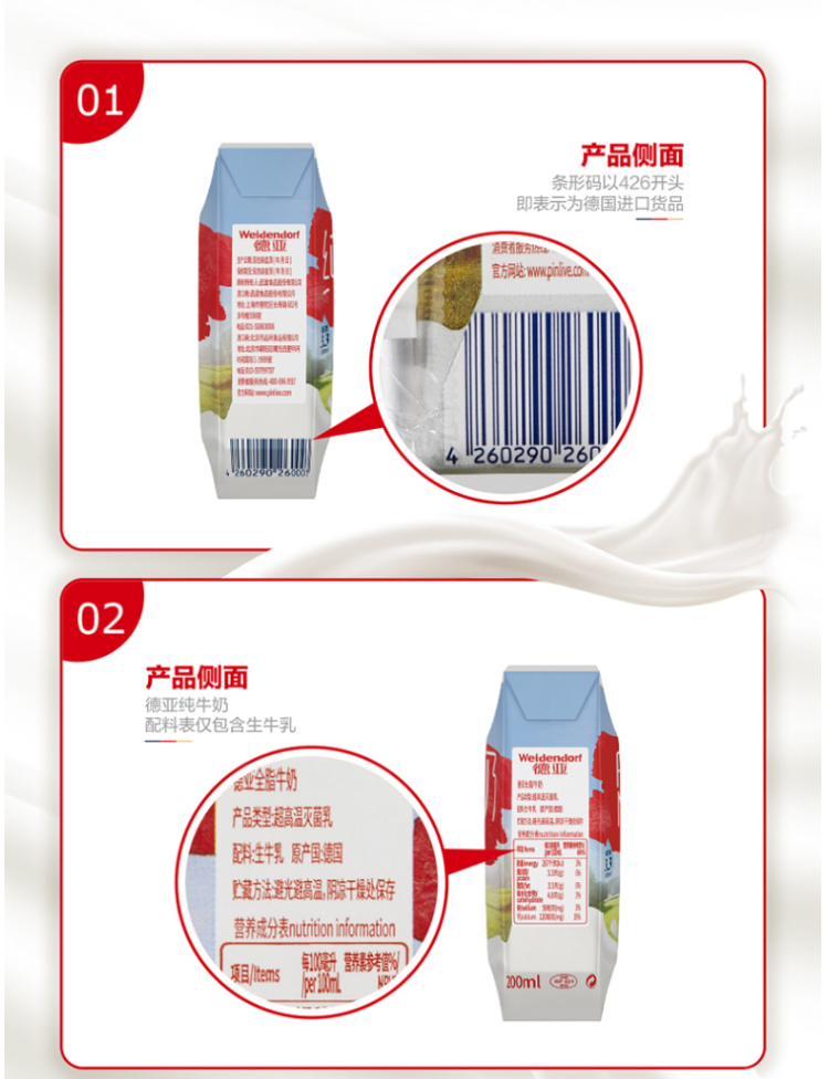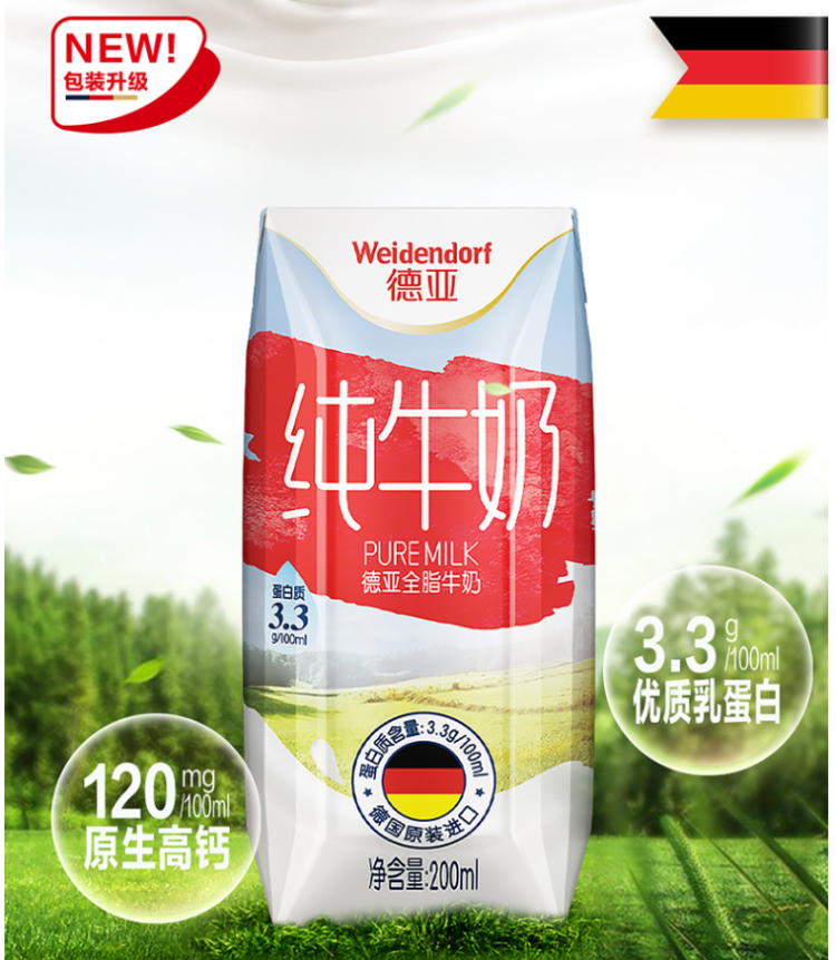 德亚全脂牛奶200ml*12礼盒装(进口牛奶日期不过半) 拿铁色
