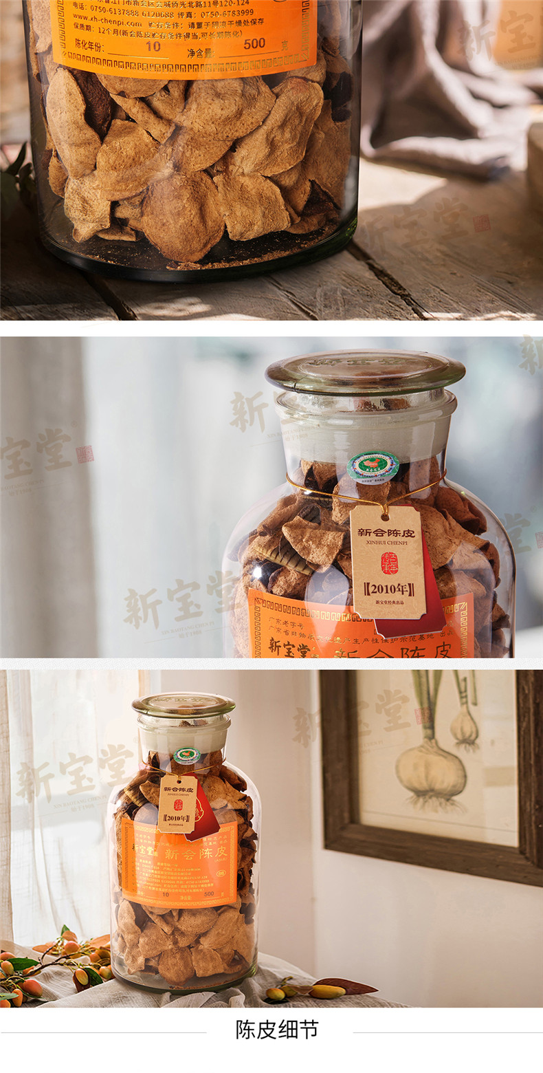 新宝堂十年新会陈皮蕴香瓶礼盒10年广东特产陈皮干玻璃瓶礼盒500克泡茶 十年新会陈皮蕴香瓶礼盒
