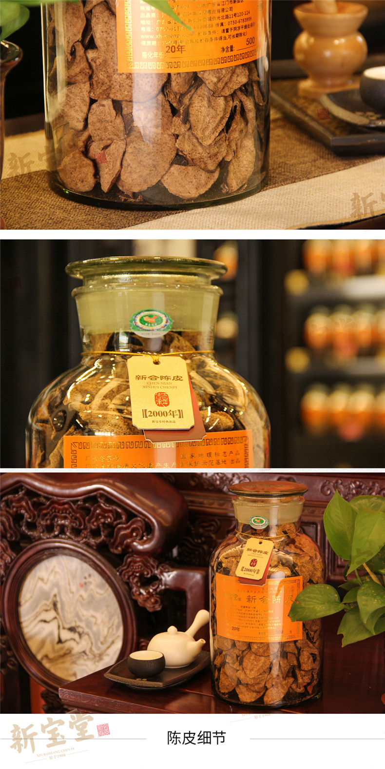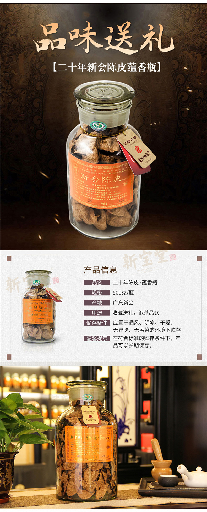 新宝堂二十年新会陈皮蕴香瓶礼盒20年陈皮泡茶玻璃瓶礼盒500克送礼