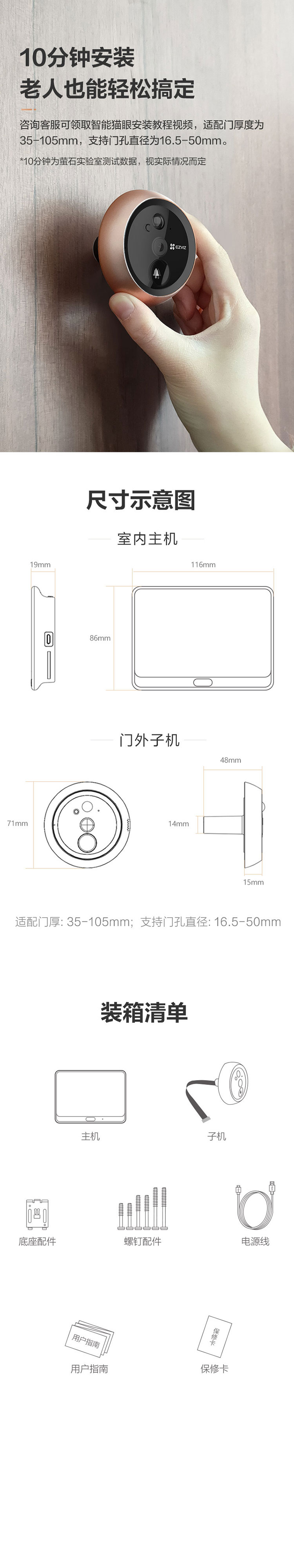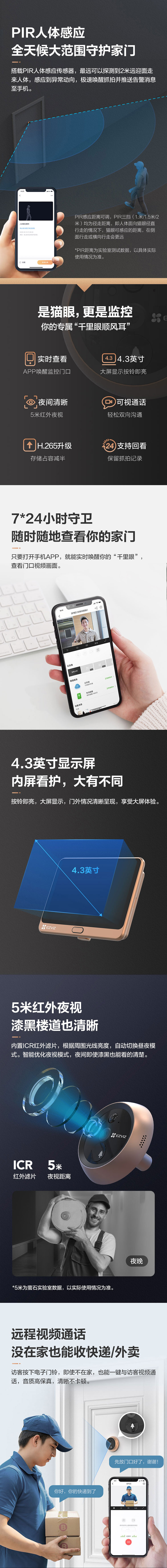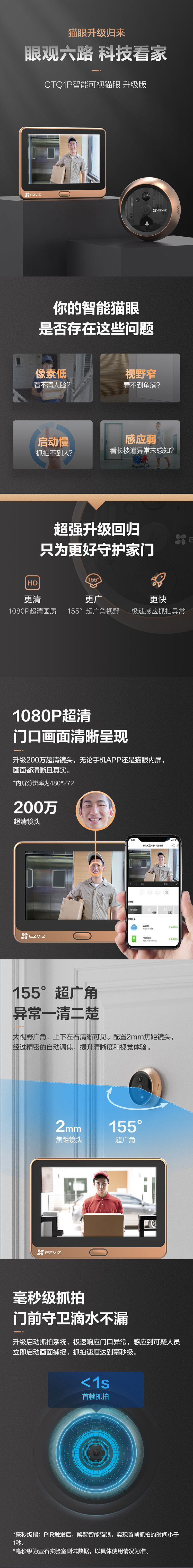 萤石EZVIZ室内200万像素智能电子猫眼CTQ1P 香槟色