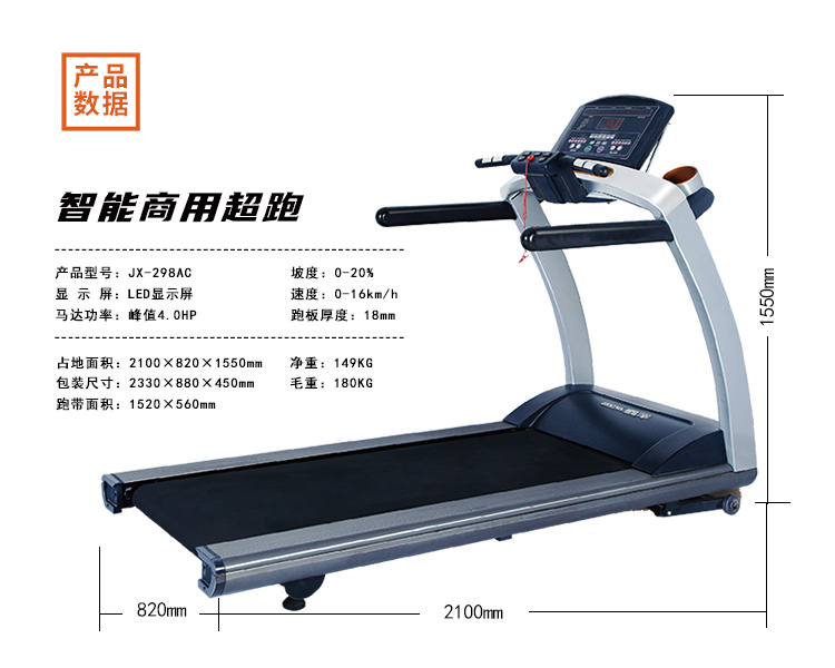 军霞豪华交流轻商变频跑步机JX-298AC 混色