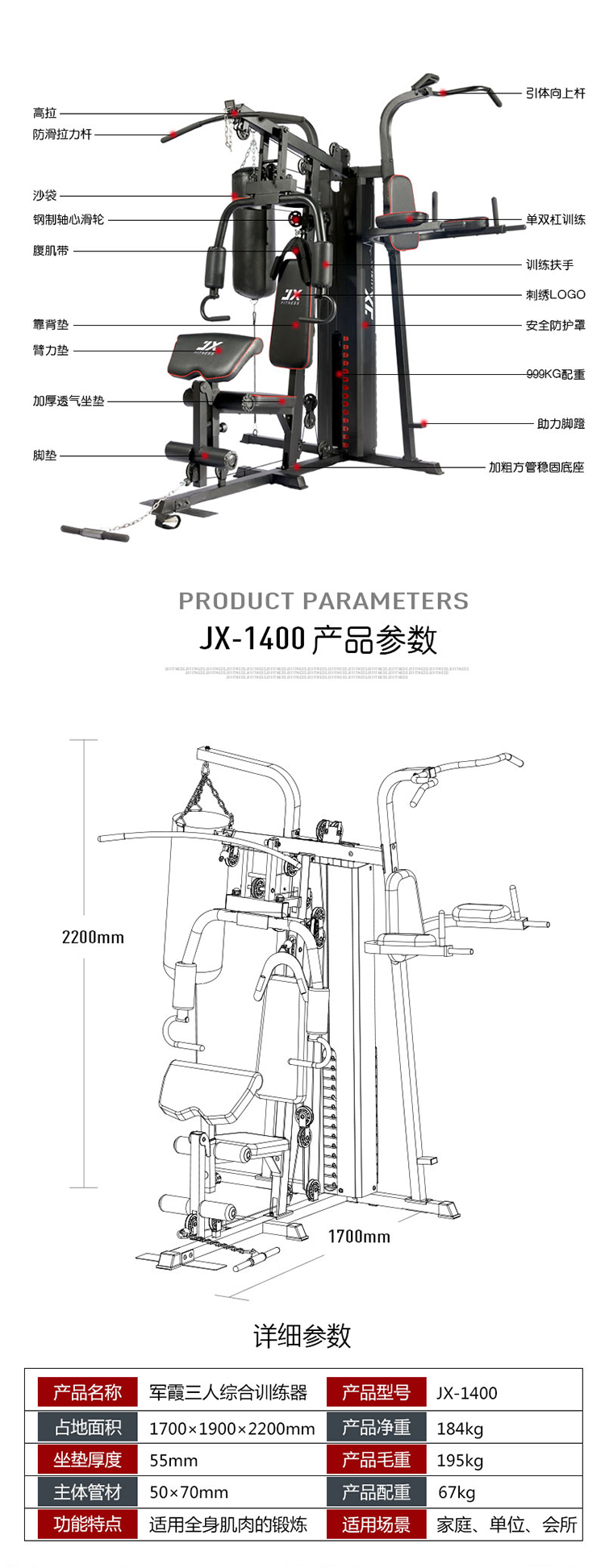 军霞豪华三人站多功能综合训练器JX-1400 黑色
