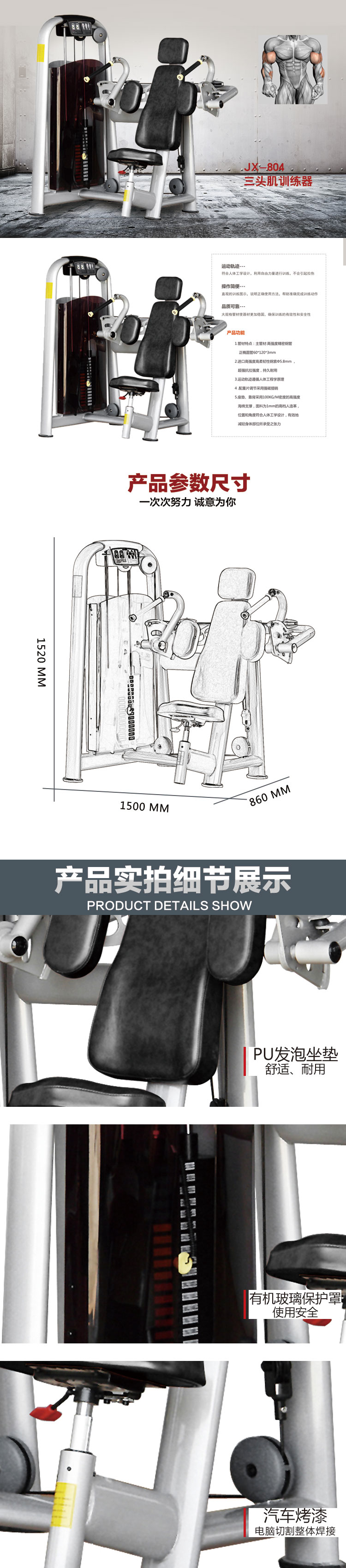 军霞(JUNXIA)JX-804 三头肌训练器健身房商用器材 黑色