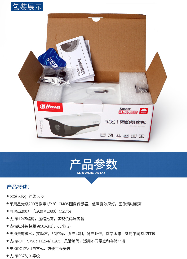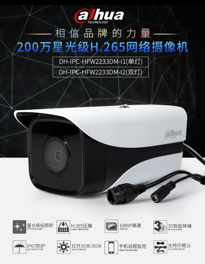 大华Dahua监控摄像头DH-IPC-HFW2433DM-I1 混色