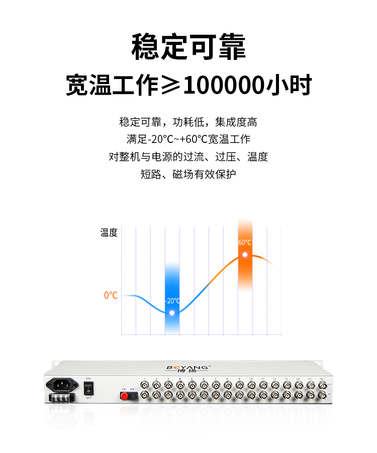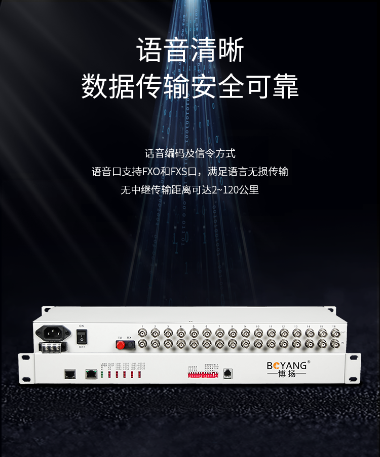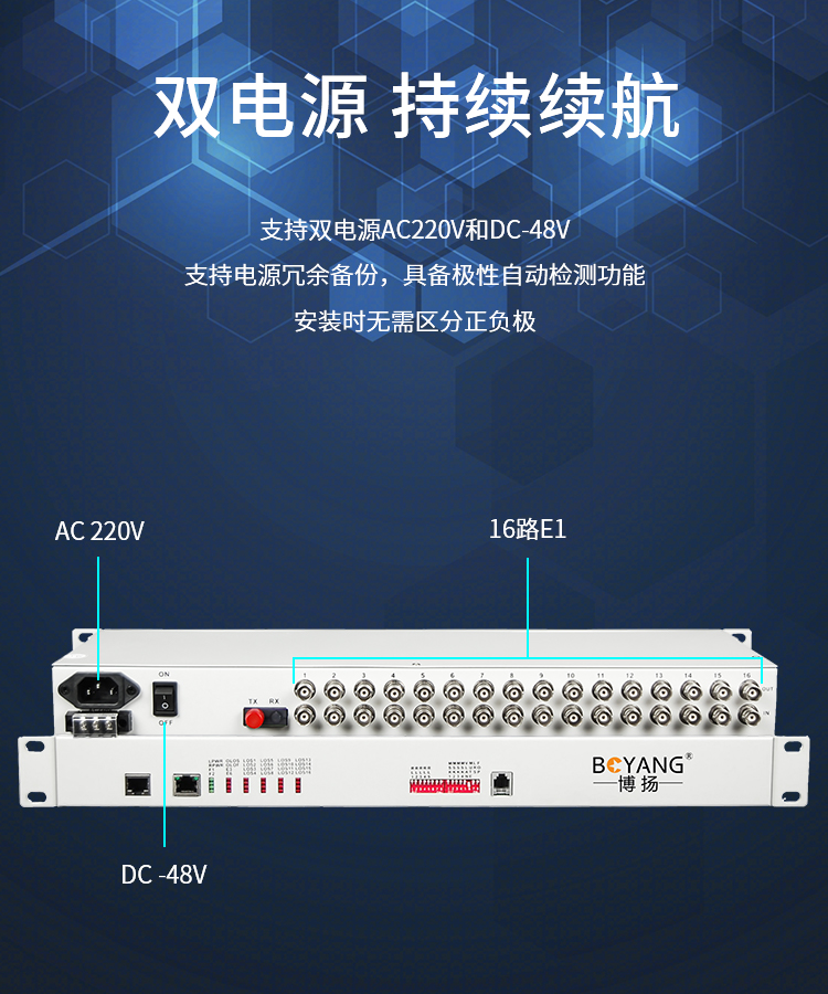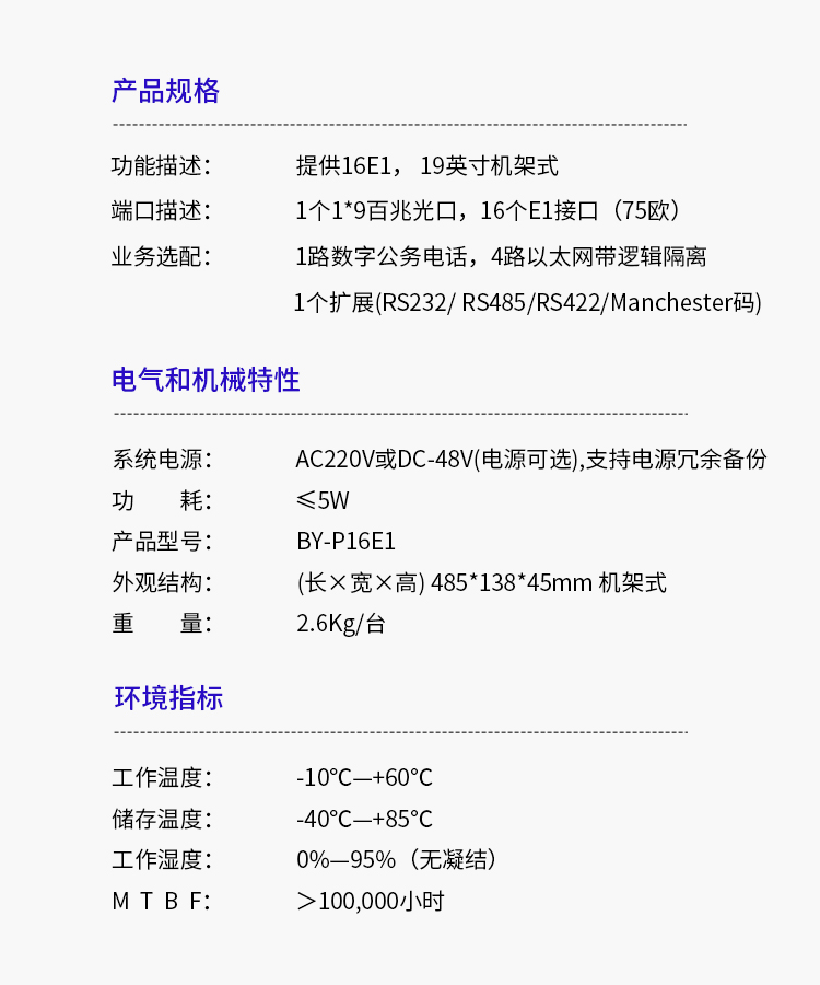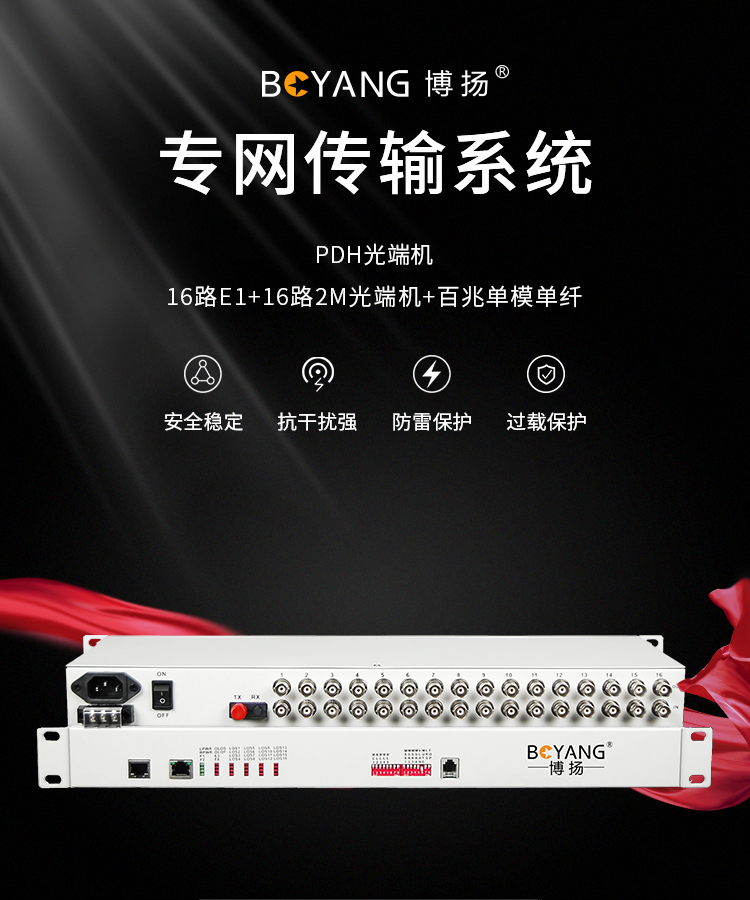 博扬(BOYANG)BY-P16E1 PDH光端机16路E1 16路2M光端机 光纤收发器 FC单纤20公里 机架式 双电源 白色