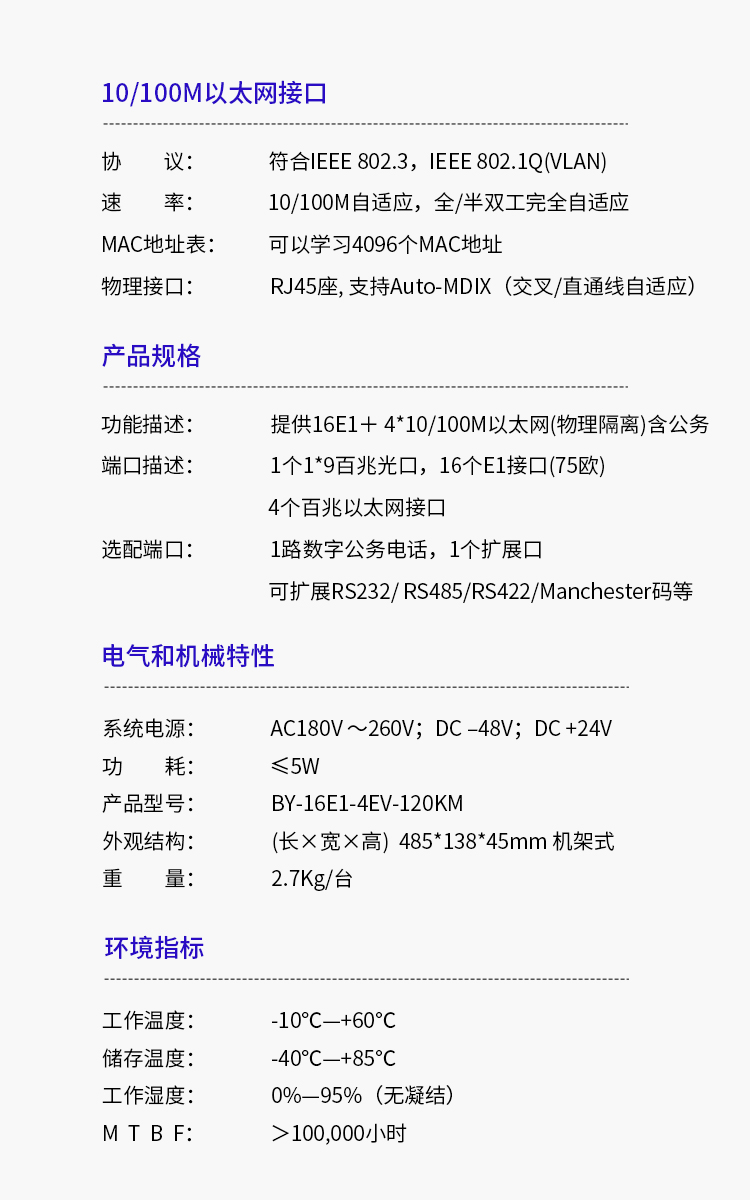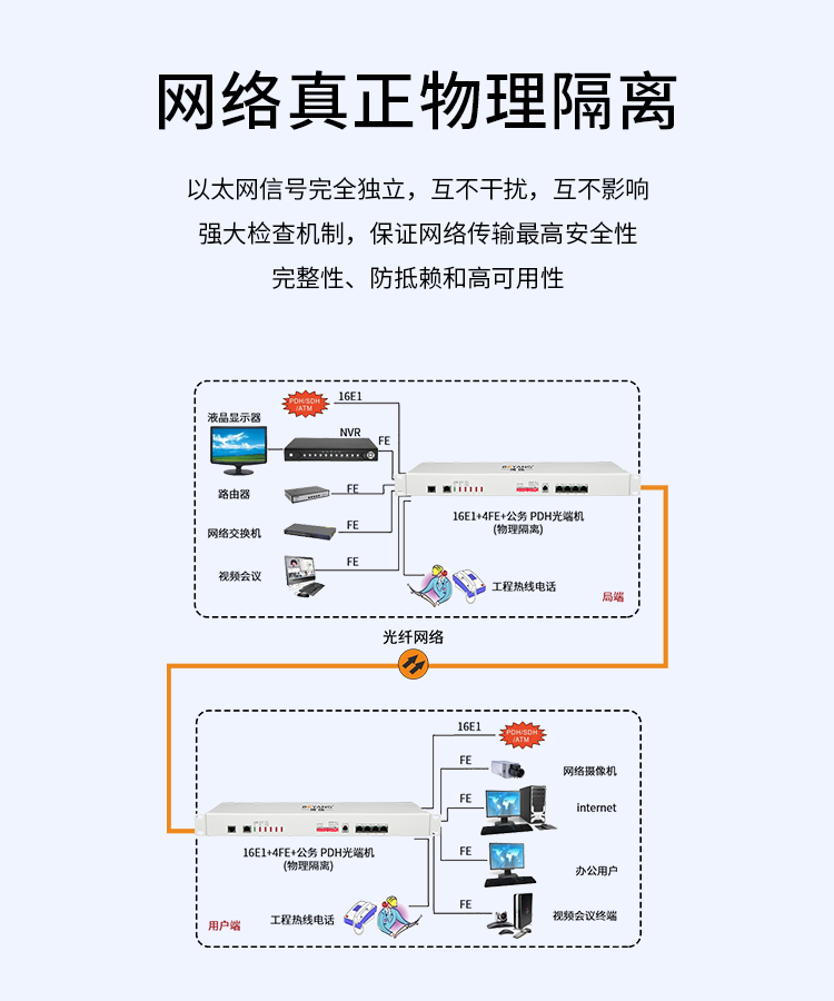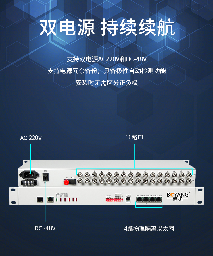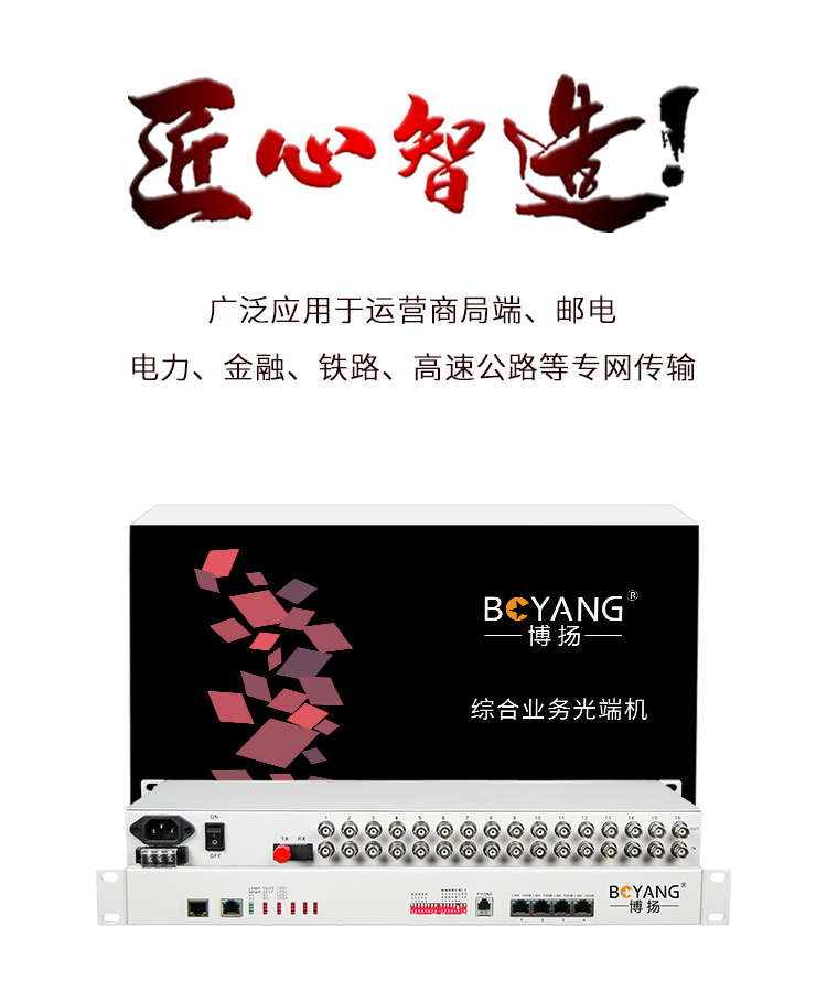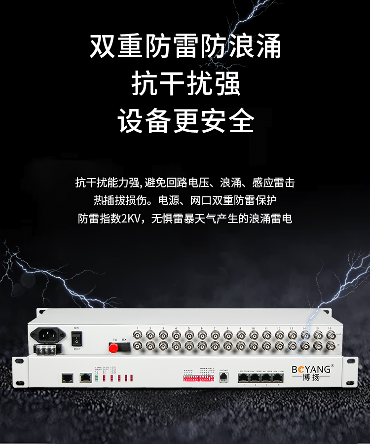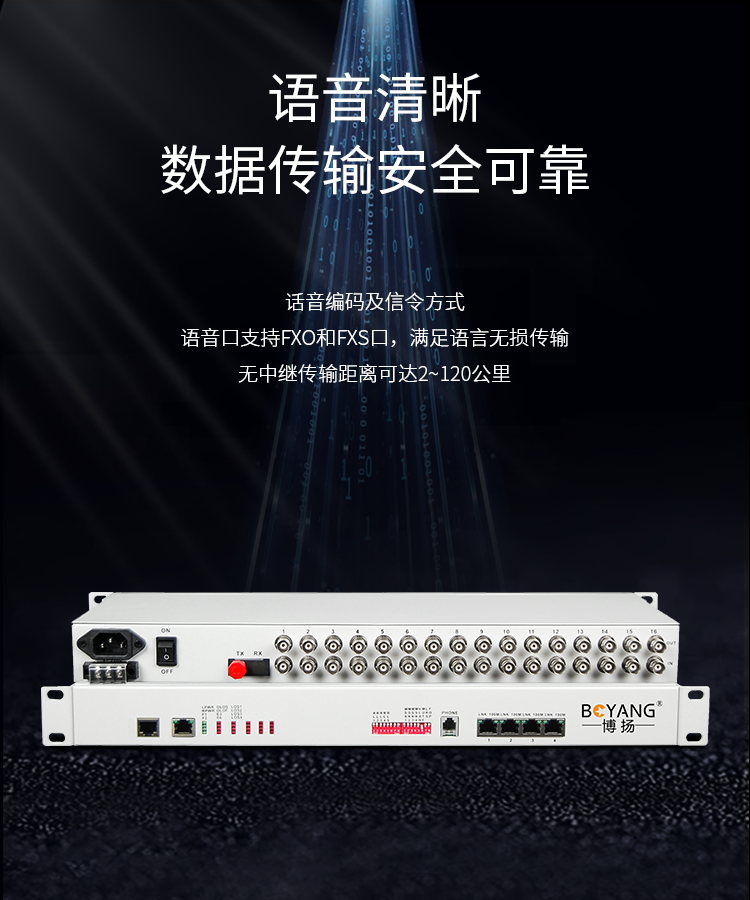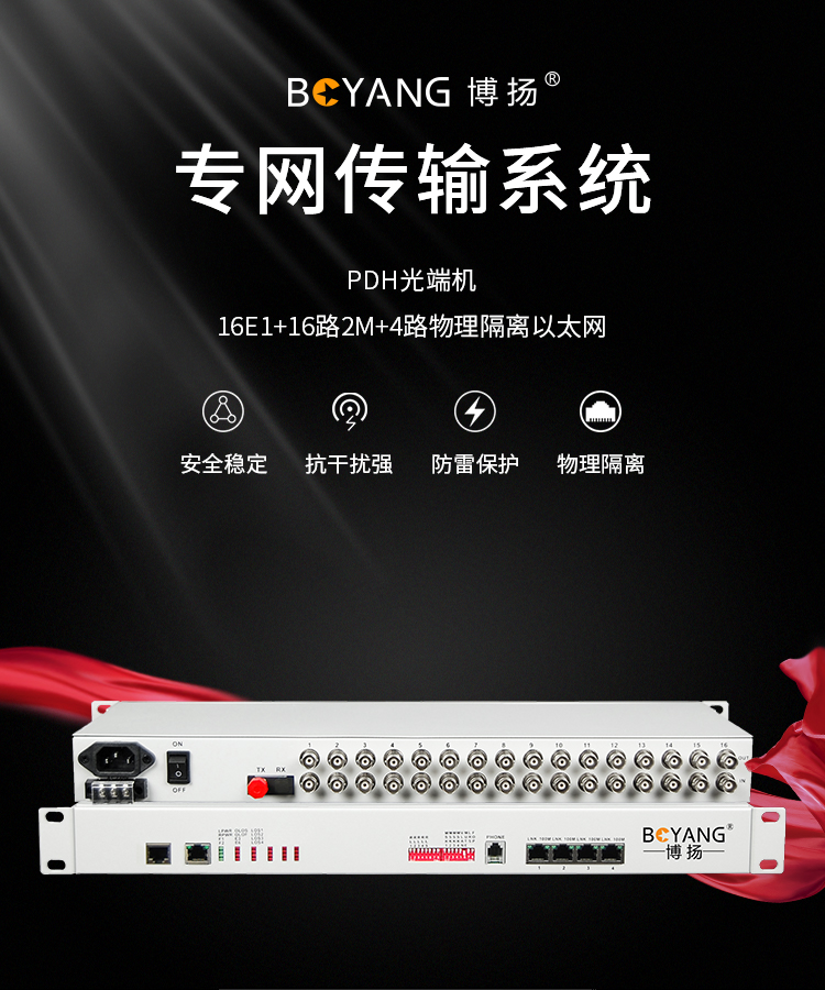 博扬(BOYANG)PDH光端机16E1 16路2M+4路以太网带物理隔离 FC单纤120公里机架式 1对价BY-16E1-4EV-120KM 白色