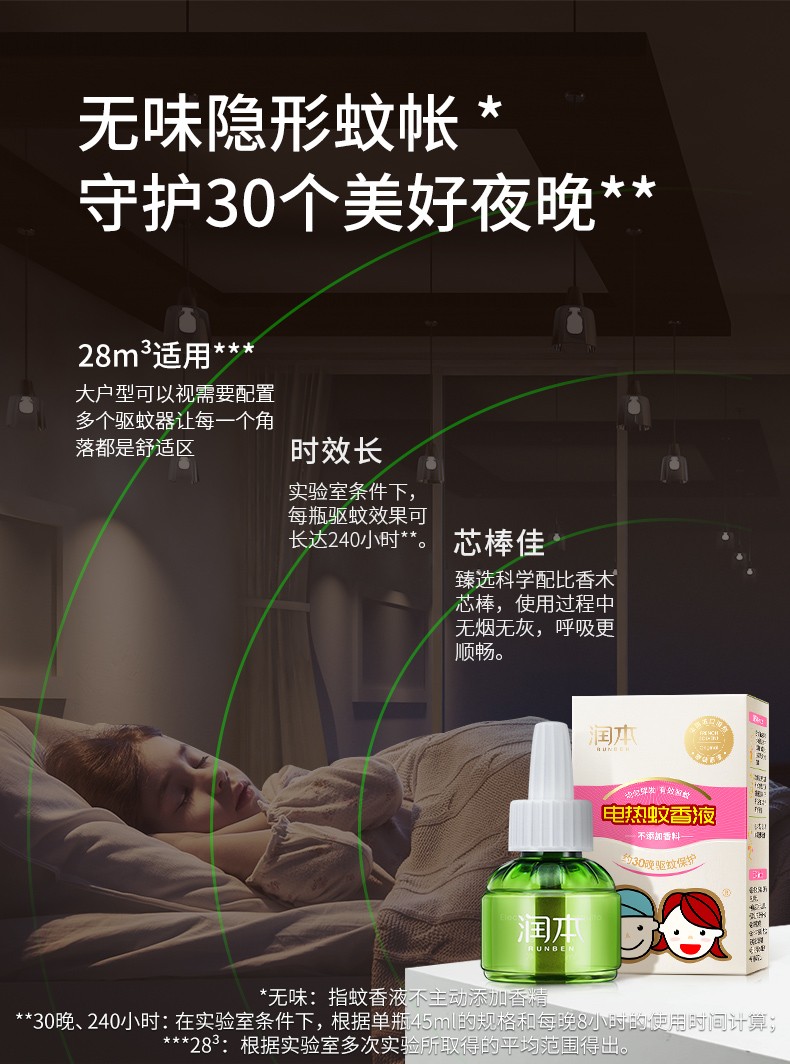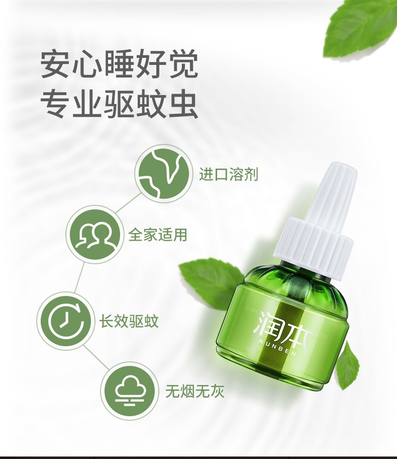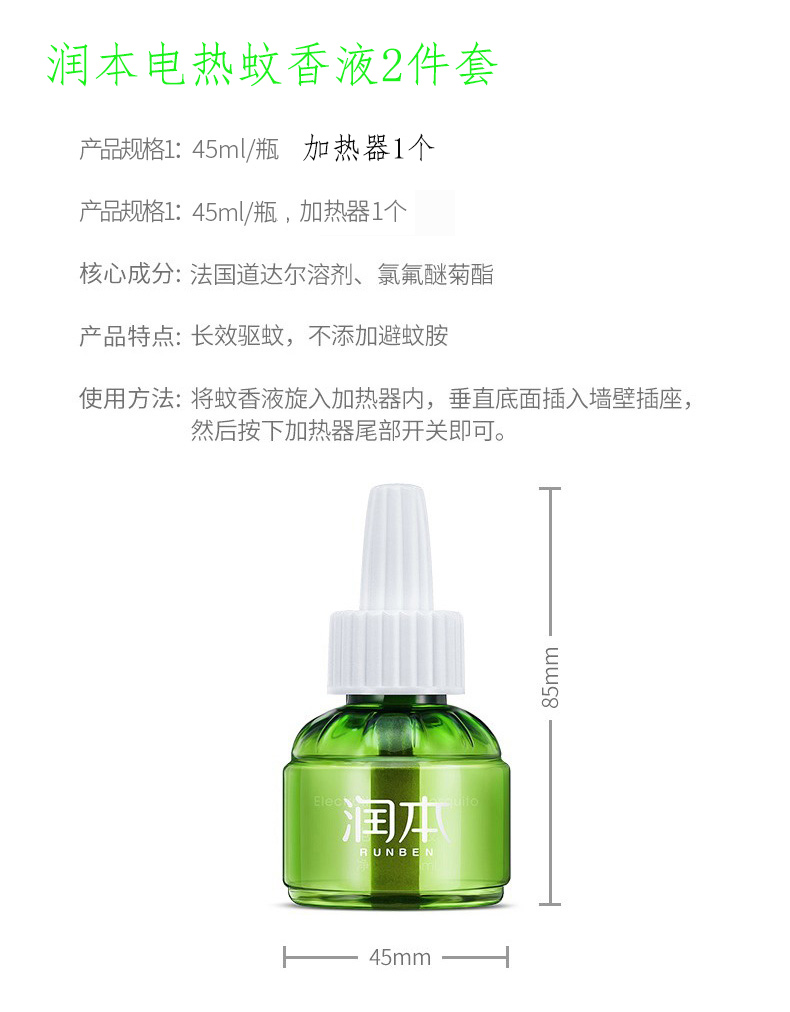 润本电热蚊香液(无香型)2件套 驱蚊液45ml+加热器x1 白色
