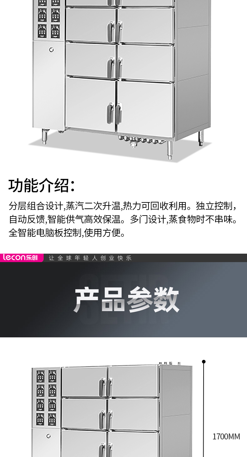 乐创( lecon) 商用多门蒸柜 食堂酒店智能电热八门蒸柜 智能款 LC-J-ZNBMD单位:台 不锈钢色