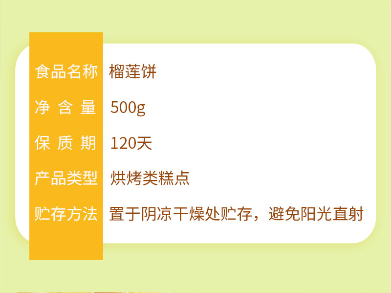 味滋源 榴莲饼 500g 爆浆流心馅饼 绿色(单位:盒)