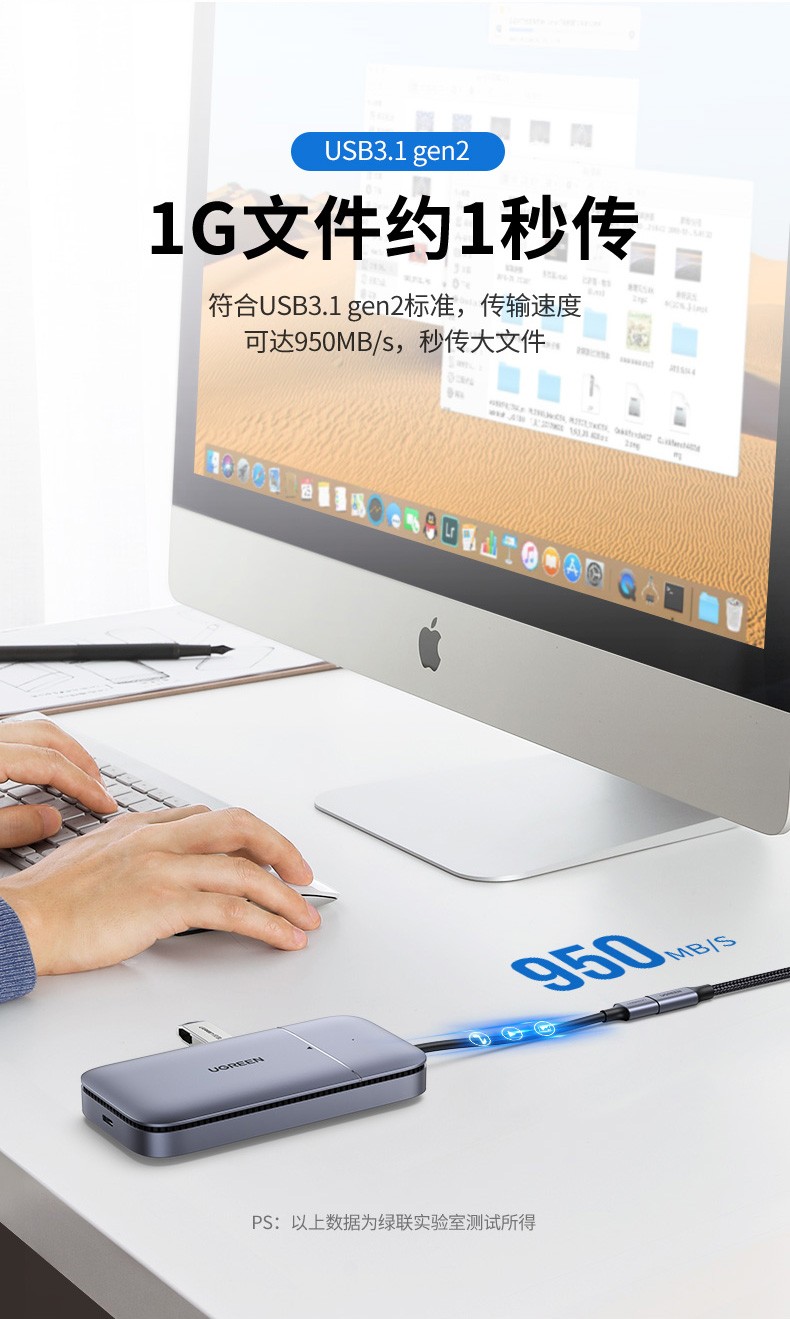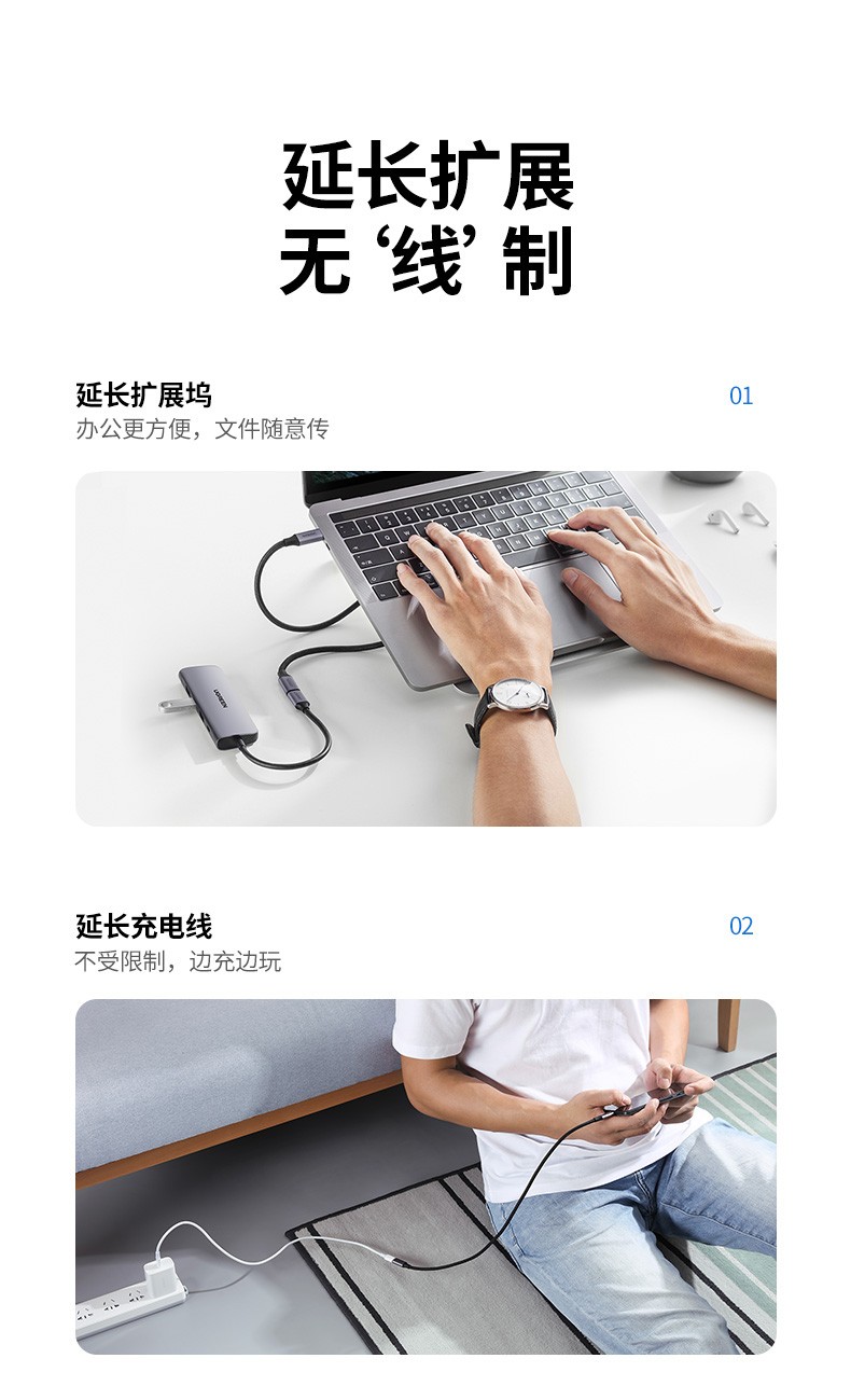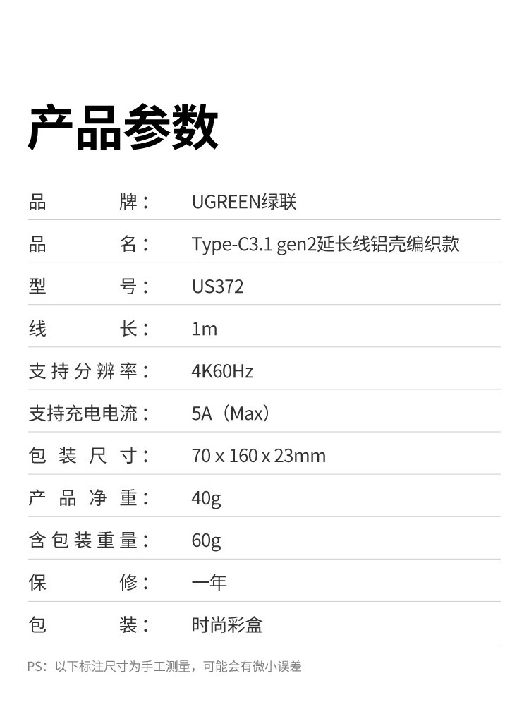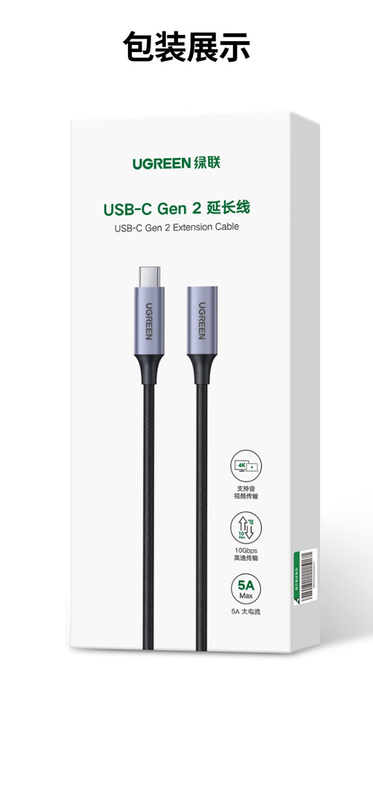 绿联 Type-C延长线公对母usb3.1gen2数据线PD100W充电扩展坞转接 延长线1米 黑色