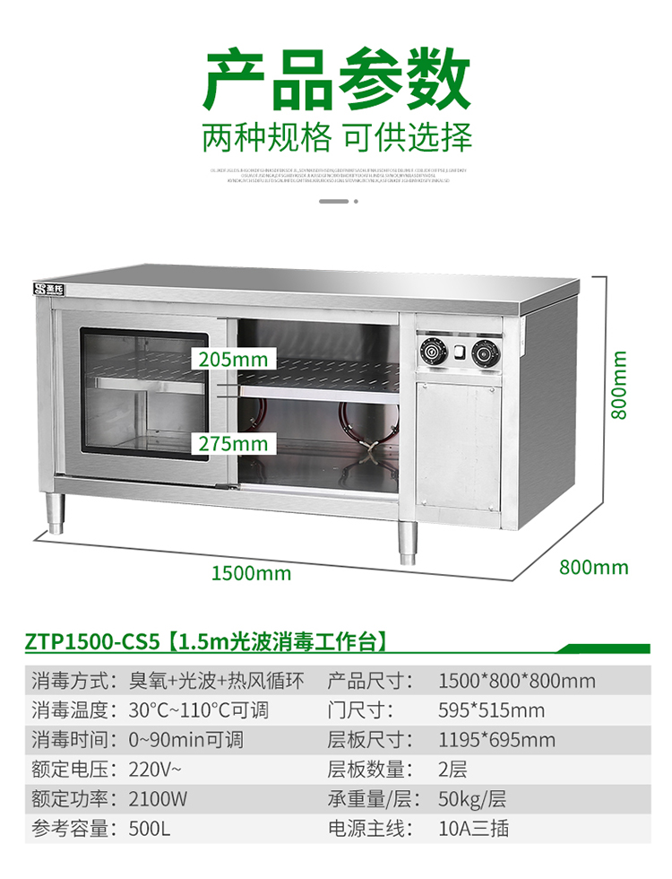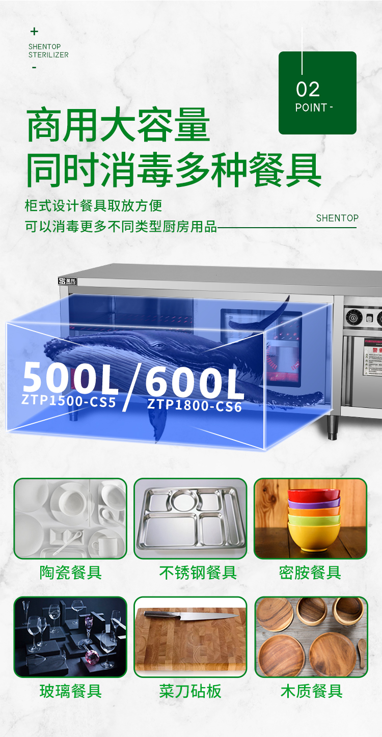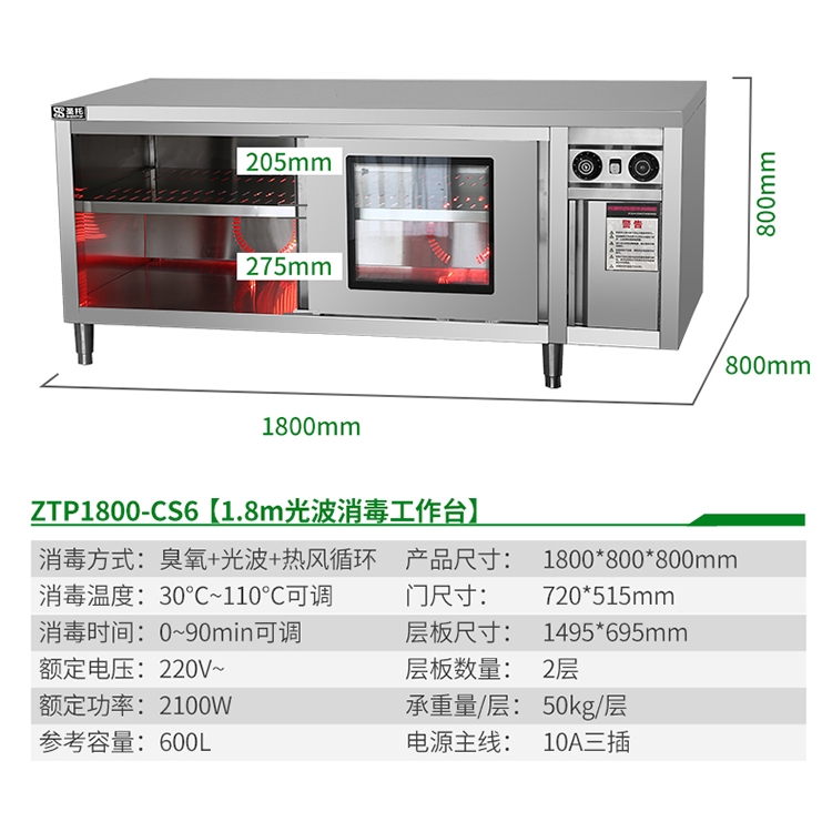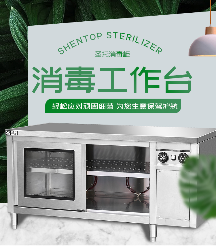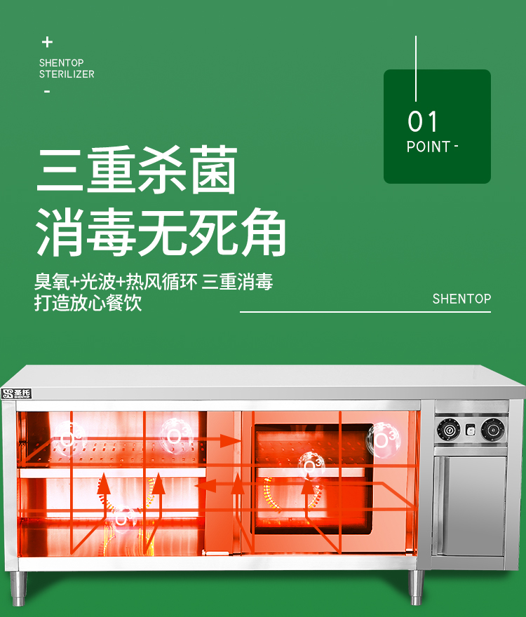 圣托(Shentop)热风循环消毒工作台 臭氧光波消毒碗柜商用 酒店饭店餐具消毒操作台 ZTP1500-CS5 不锈钢色