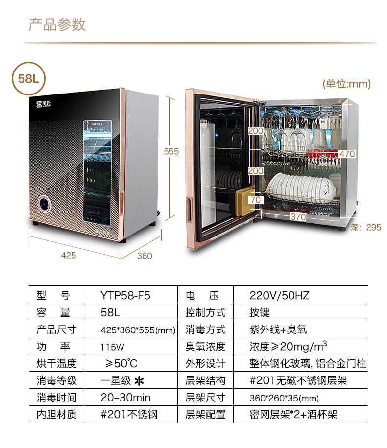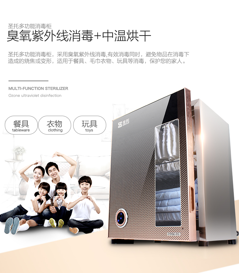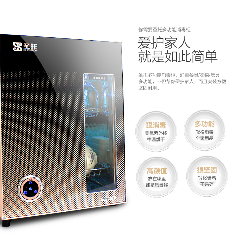 圣托(shentop)小型毛巾消毒柜单据纸币立式消毒柜家用儿童衣服内衣玩具 办公室迷你茶杯茶具杯 多功能消毒柜(YTP58-F5) 混色