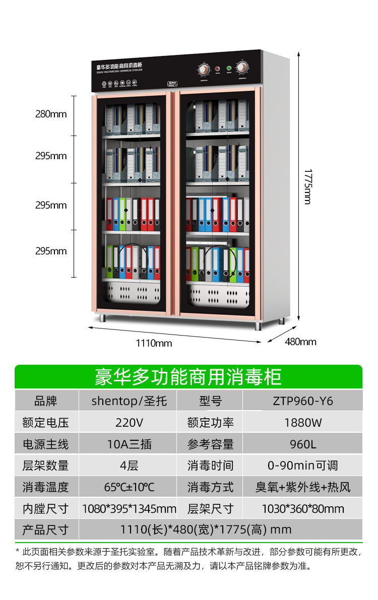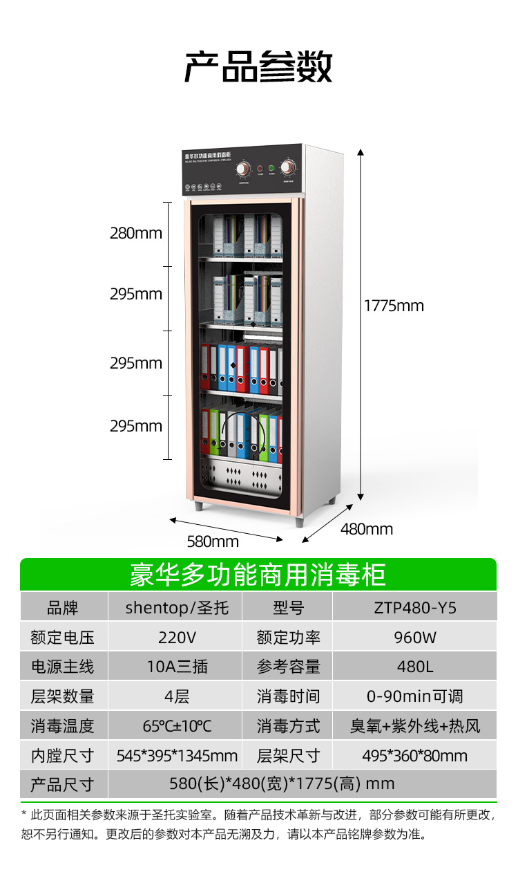 圣托(Shentop)热风循环商用消毒柜 餐具碗筷中温保洁柜 图书文件臭氧紫外线消毒 ZTP480-Y5 不锈钢色