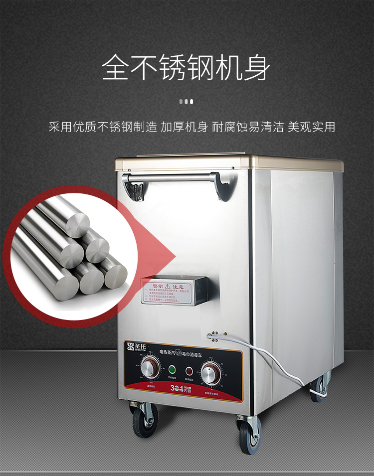 圣托(Shentop)不锈钢电热蒸汽毛巾车 美容院移动毛巾加热蒸箱 酒店湿毛巾加热消毒柜 QTP80-Q11 不锈钢色